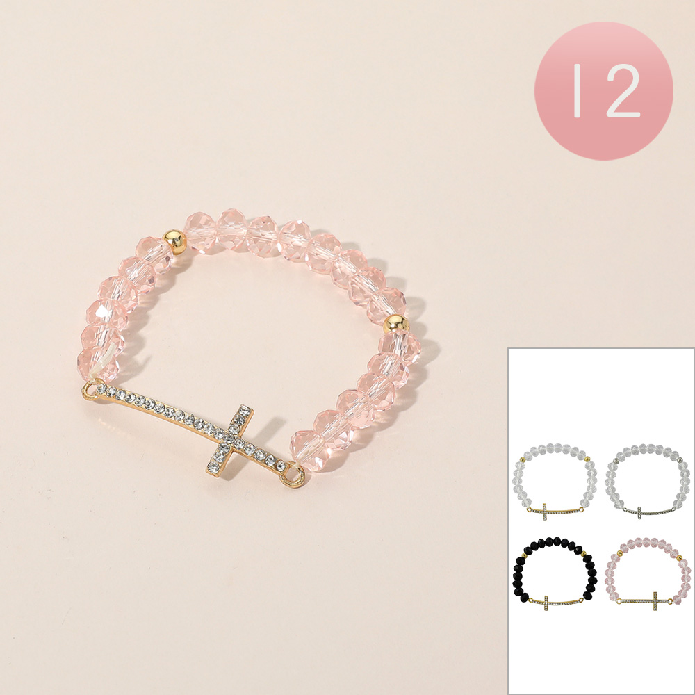 Details • Size : 0.5" H • Stretchable • Elevate your style with this beaded stretch bracelet featuring a sparkling crystal cross charm. Designed for comfort and elegance, this meaningful accessory blends faith and fashion, making it perfect for daily wear, special occasions, or thoughtful gifting. • Lead and Nickel Compliant