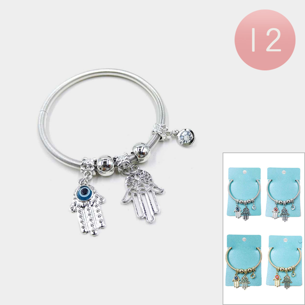 12PCS - Evil Eye Hamsa Hand Charm Stretch Bracelets