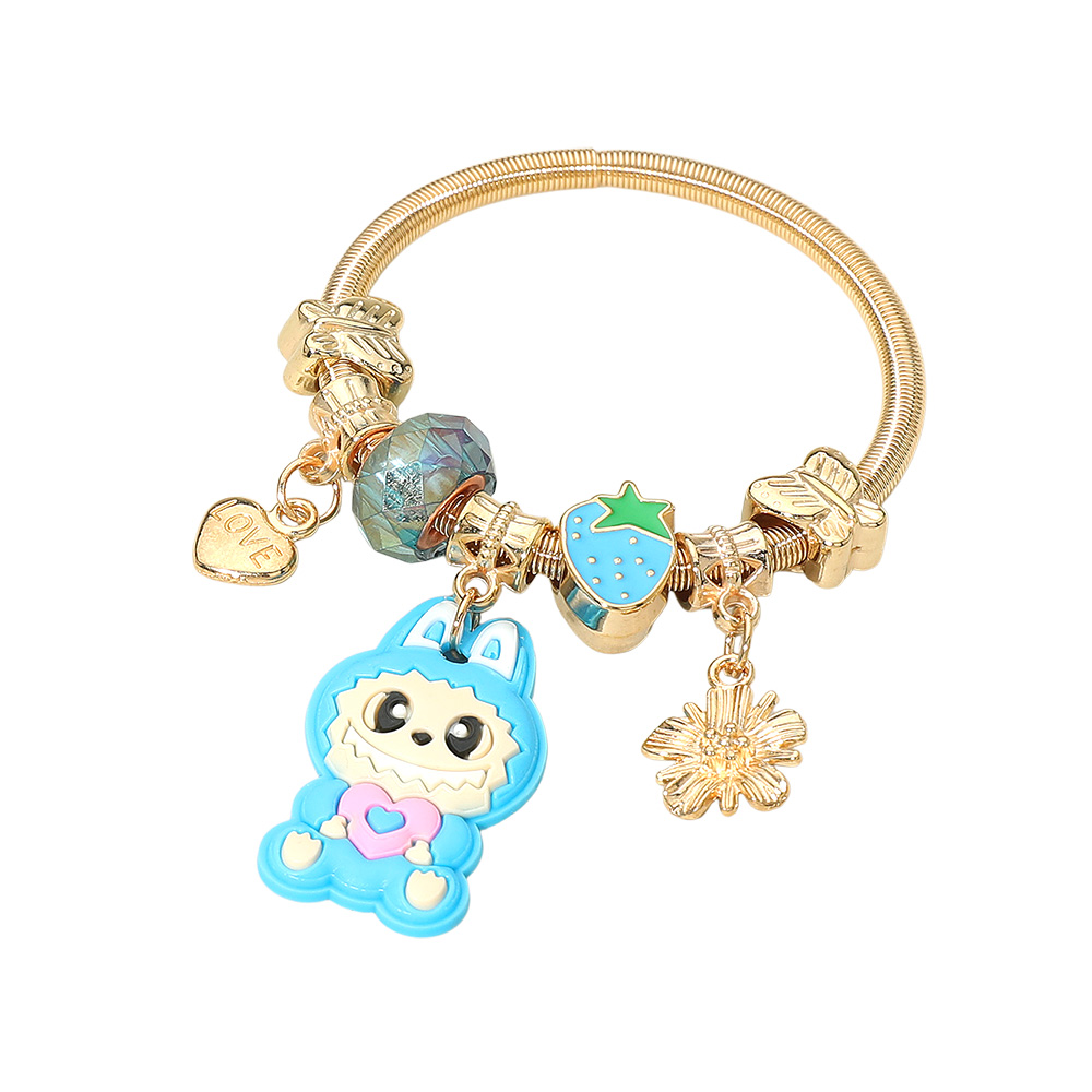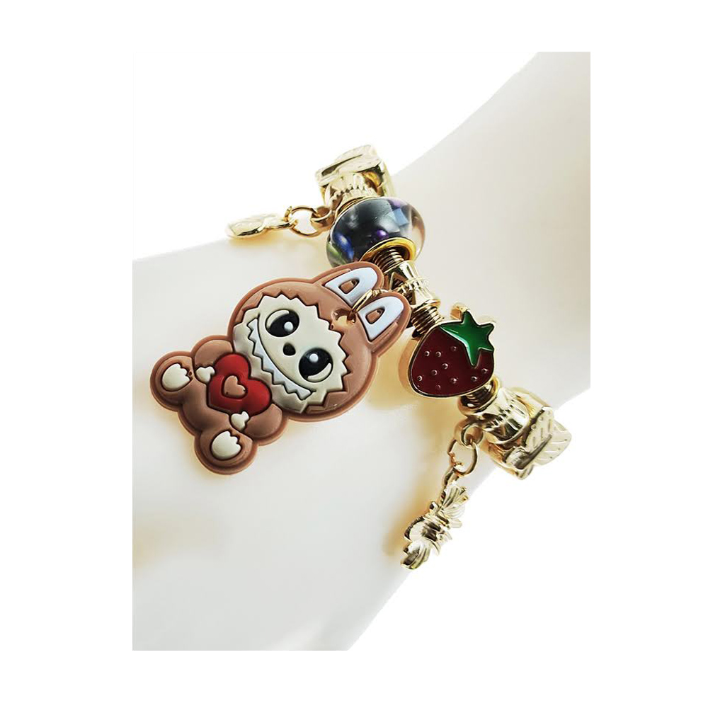 Details • Size : 0.6" H • Charm Size : 1.25" L • Stretchable • Fun kids charm bracelet featuring a cute character and playful dangling charms that bring joy to any outfit. Designed for a comfortable fit, this accessory is perfect for young jewelry lovers and makes a cheerful gift or collectible piece for everyday wear.