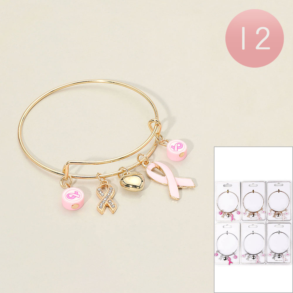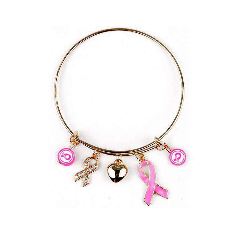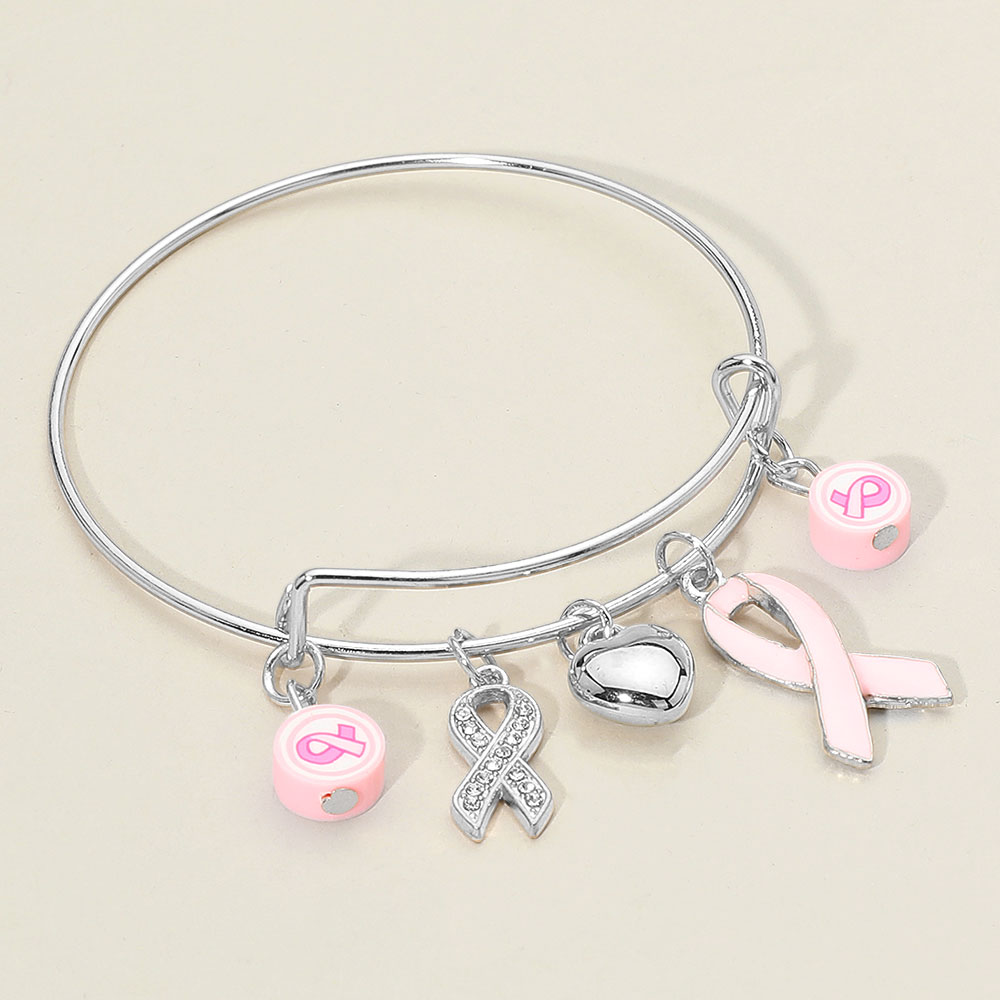 Details • Size : 0.3" H, 2.4" D • Charm Size : 1" L • Hook Closure • This ribbon charm bangle bracelet combines fashion and inspiration with delicate symbolic charms. A meaningful accessory that adds style and support, making it perfect for everyday wear or as a thoughtful gift for someone special.