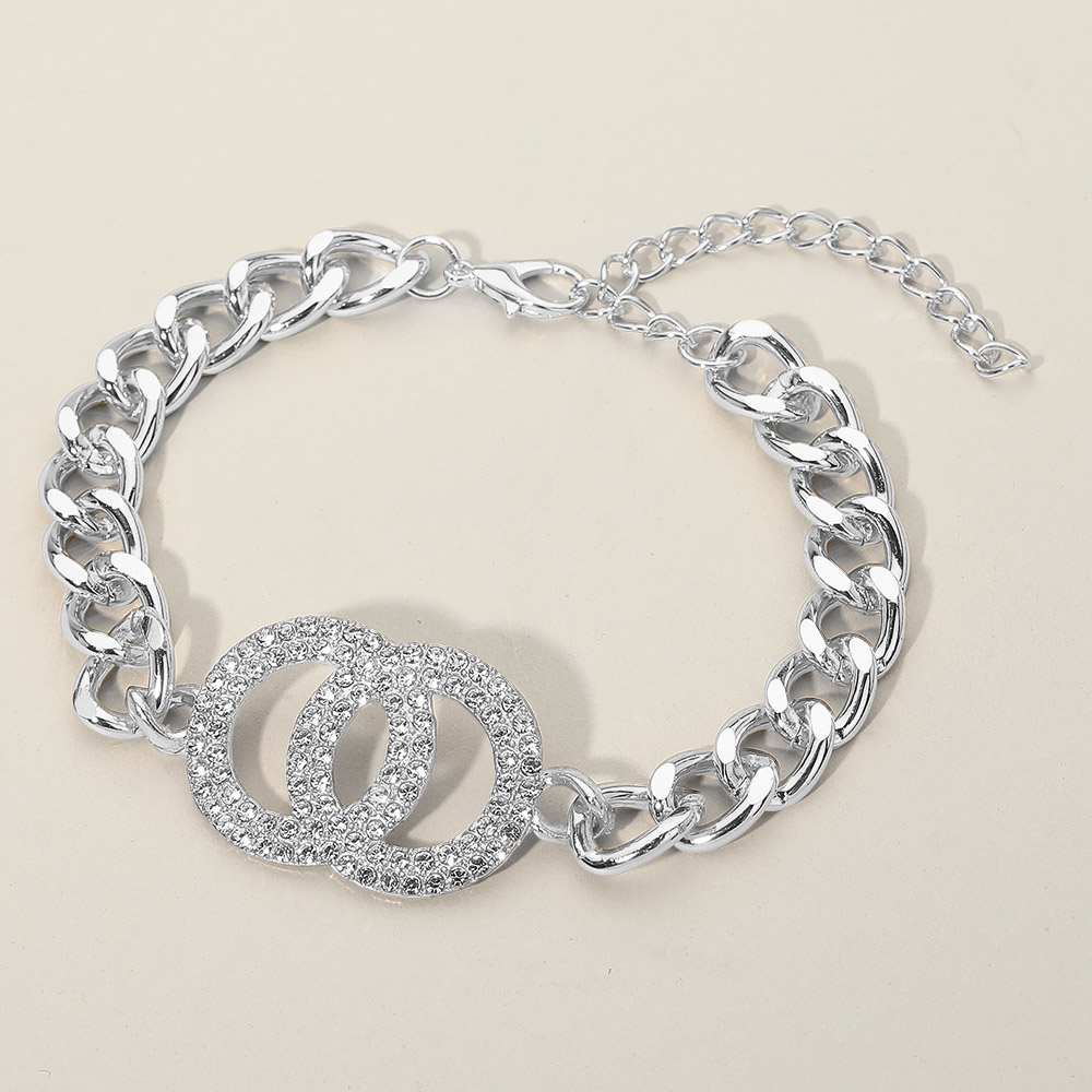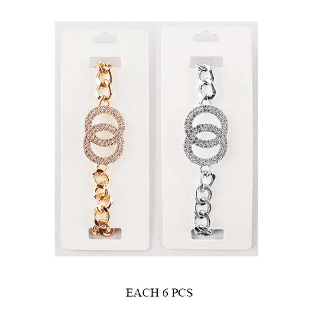 Details • Size : 1" H, 9.25" + 3" L • Lobster Clasp Closure • Enhance your elegance with this Double Circle Bracelet, featuring dazzling rhinestones and a sleek chain design. A timeless piece that symbolizes unity and sophistication, perfect for casual wear, evening outings, or as a thoughtful gift for someone special. • Lead and Nickel Compliant