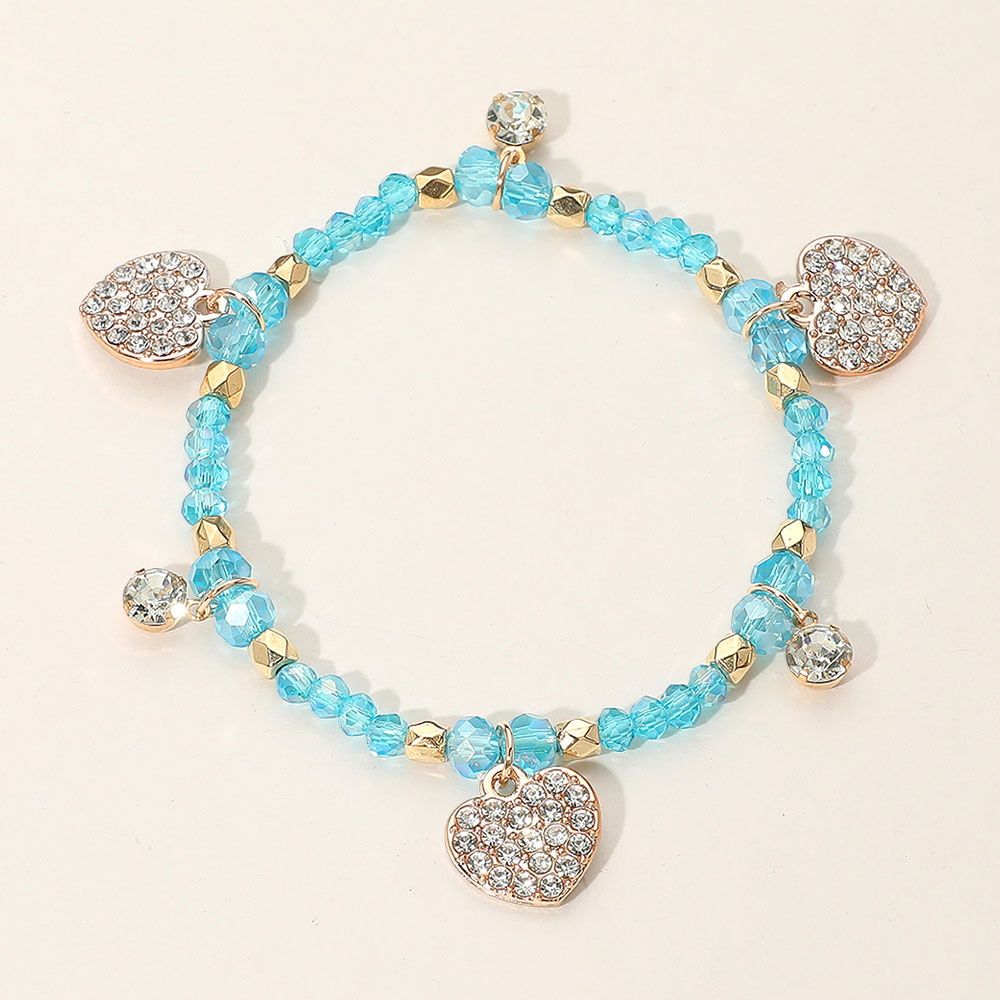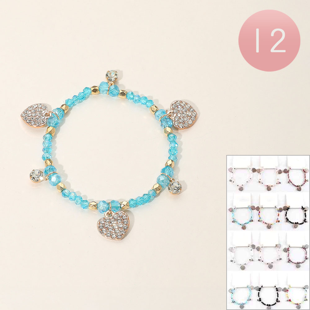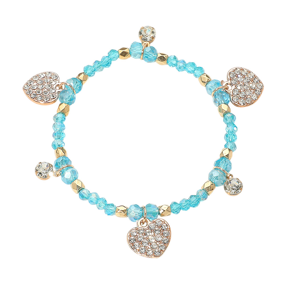 Details • Size : 0.25" H • Charm Size : 0.75" L • Stretchable • Glam up your wrist with this elegant blue stretch bracelet, featuring faceted beads, gold-tone accents, and shimmering crystal heart charms. Perfect for casual or dressy occasions, this bracelet adds a vibrant touch of charm and sparkle. Available in assorted designs.