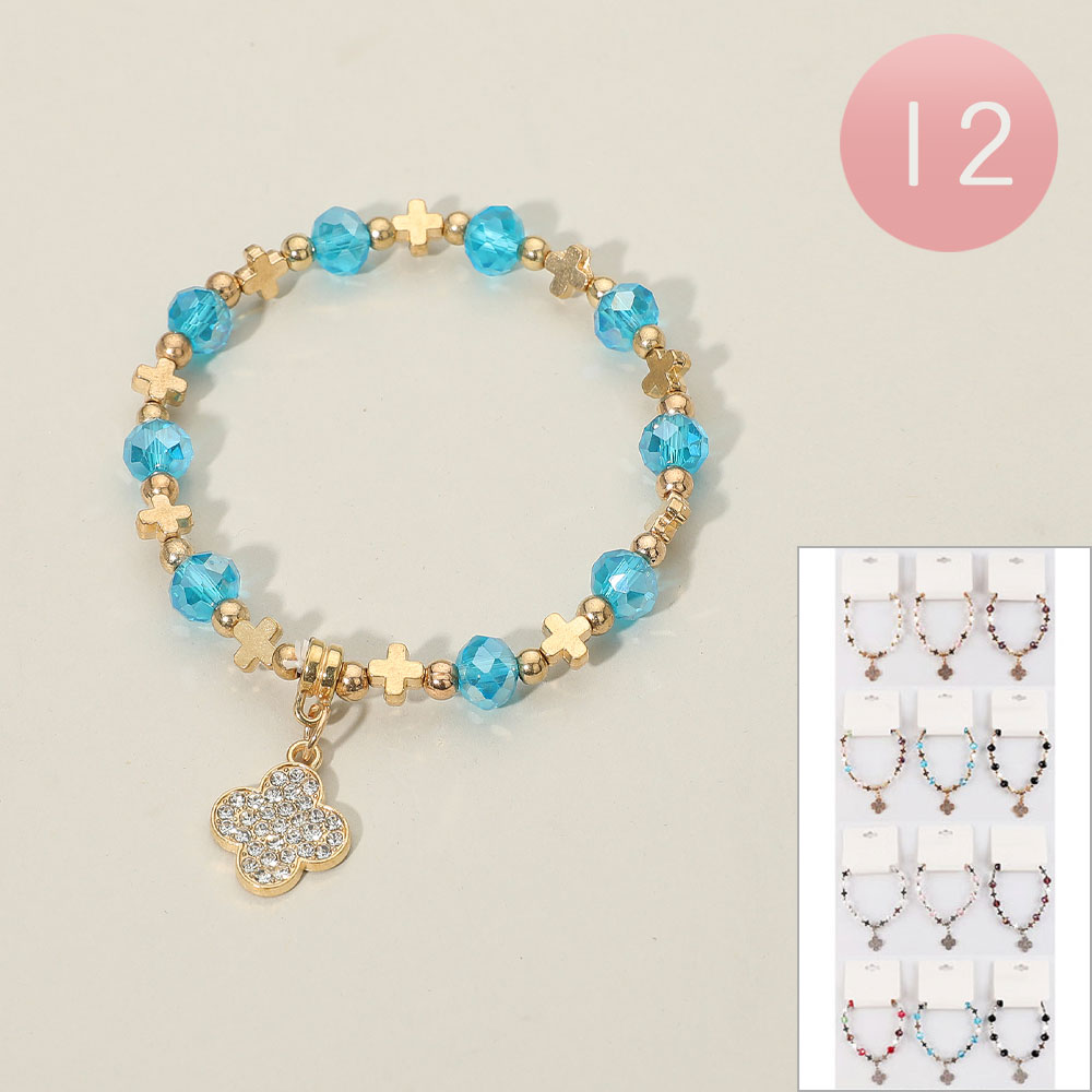 12PCS - Stone Paved Quatrefoil Charm Cross Faceted Beaded Stretch Bracelets 12PCS - Stone Paved Quatrefoil Charm Cross Faceted Beaded Stretch Bracelets 12PCS - Stone Paved Quatrefoil Charm Cross Faceted Beaded Stretch Bracelets 12PCS - Stone Paved Quatrefoil Charm Cross Faceted Beaded Stretch Bracelets