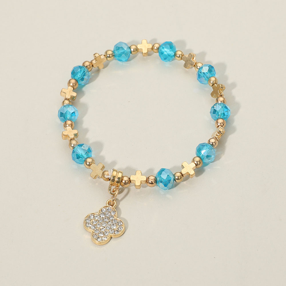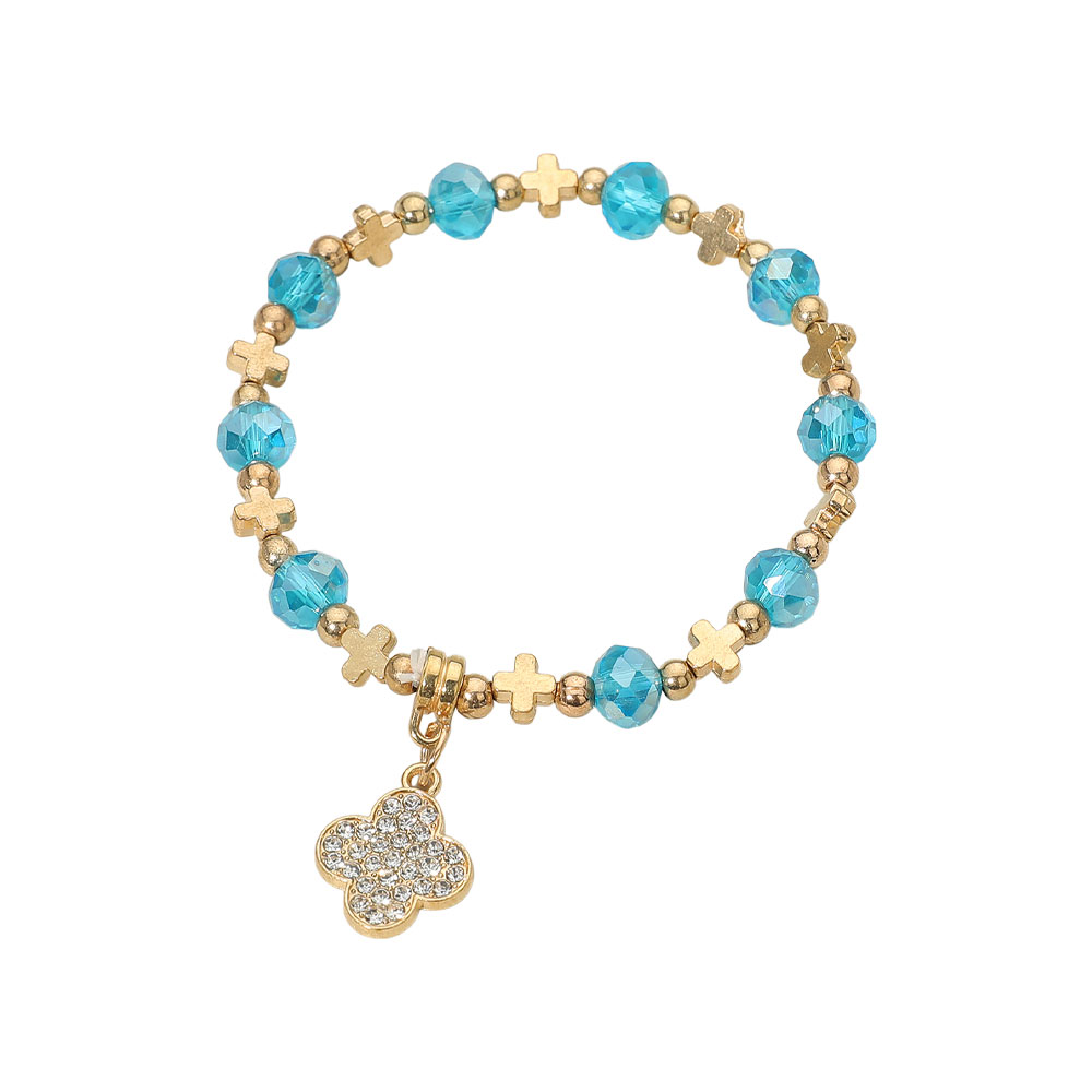 • This beaded stretch bracelet features a mix of faceted beads and mini cross accents, highlighted by a sparkling crystal quatrefoil charm. Designed for comfort and versatility, it adds a touch of elegance and shine to everyday wear, perfect for stacking or wearing as a standalone statement.