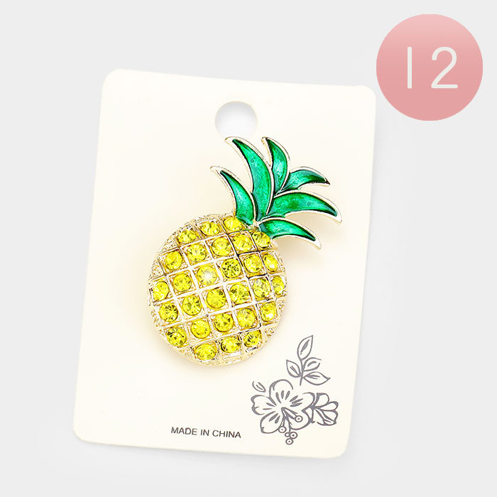12 PCS Stone Embellished Pineapple Pin Brooches