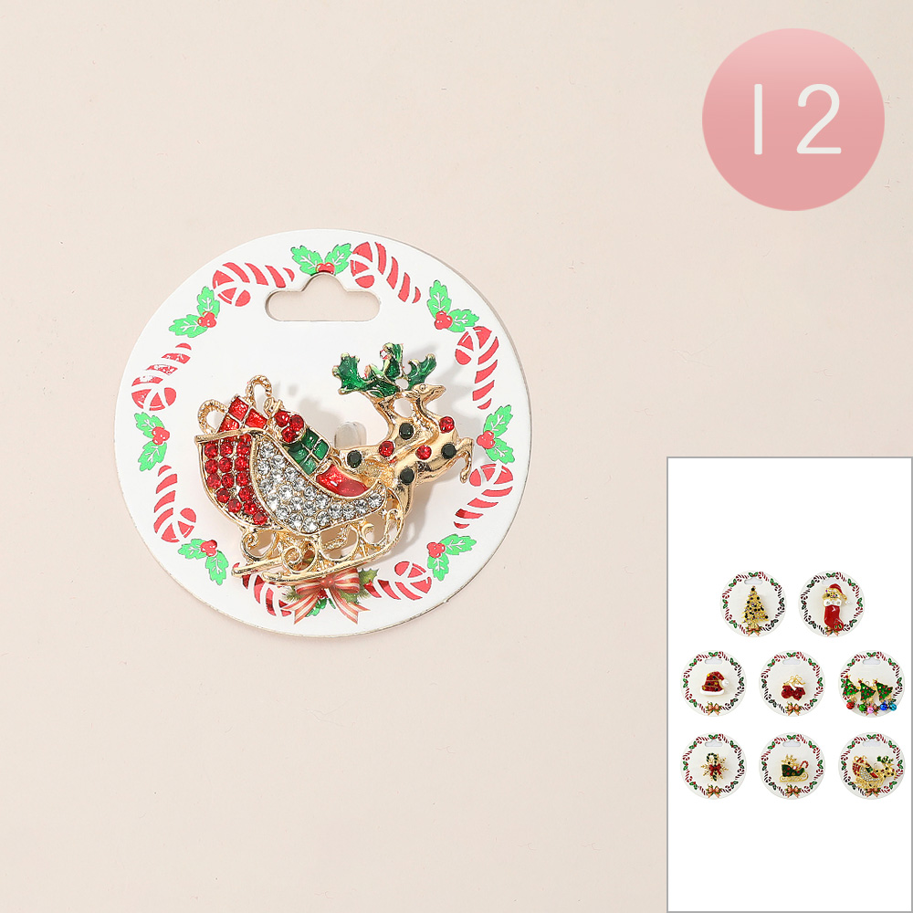 12PCS - Rhinestone Embellished Christmas Theme Pin Brooches