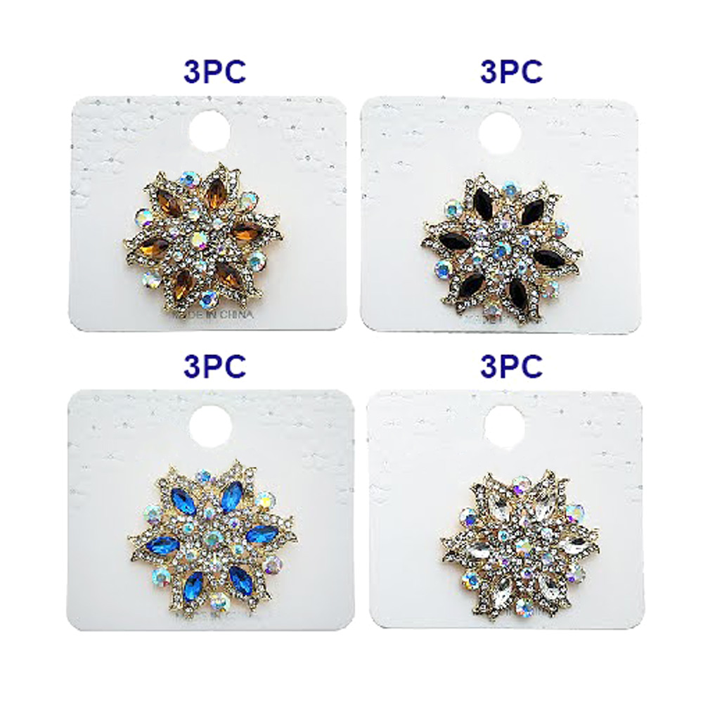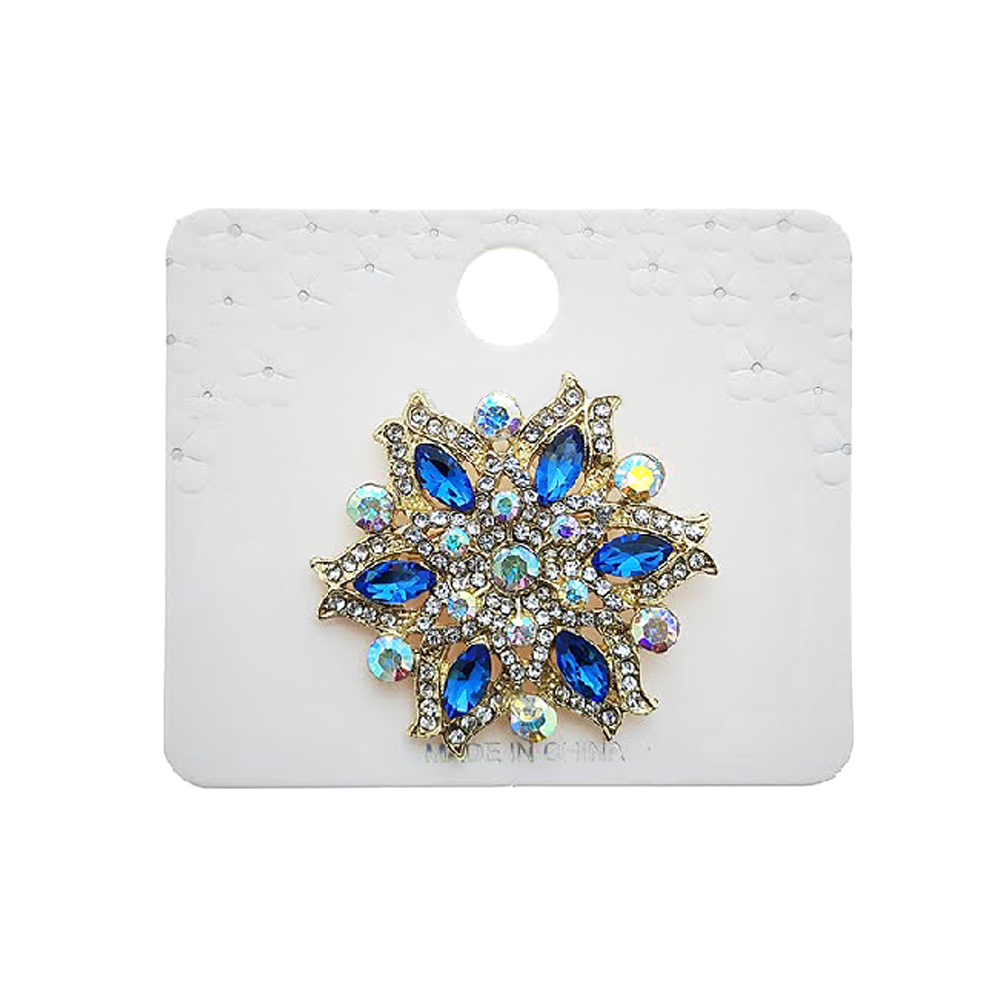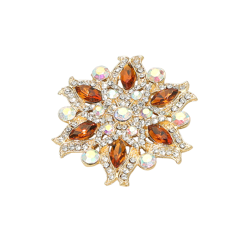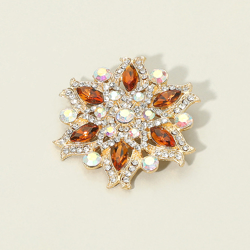 Details • Size : 1.6" X 1.6" • Pin Brooch • Elegant floral brooch featuring sparkling stone detail arranged in a radiant design. Perfect for adding a touch of charm to jackets, scarves, or bags, this accessory brings a refined accent to any outfit and makes a stylish gift or collection piece.