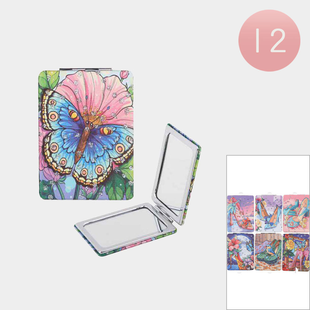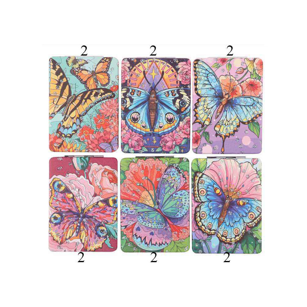 12PCS - Butterfly Flower Printed Cosmetic Mirrors