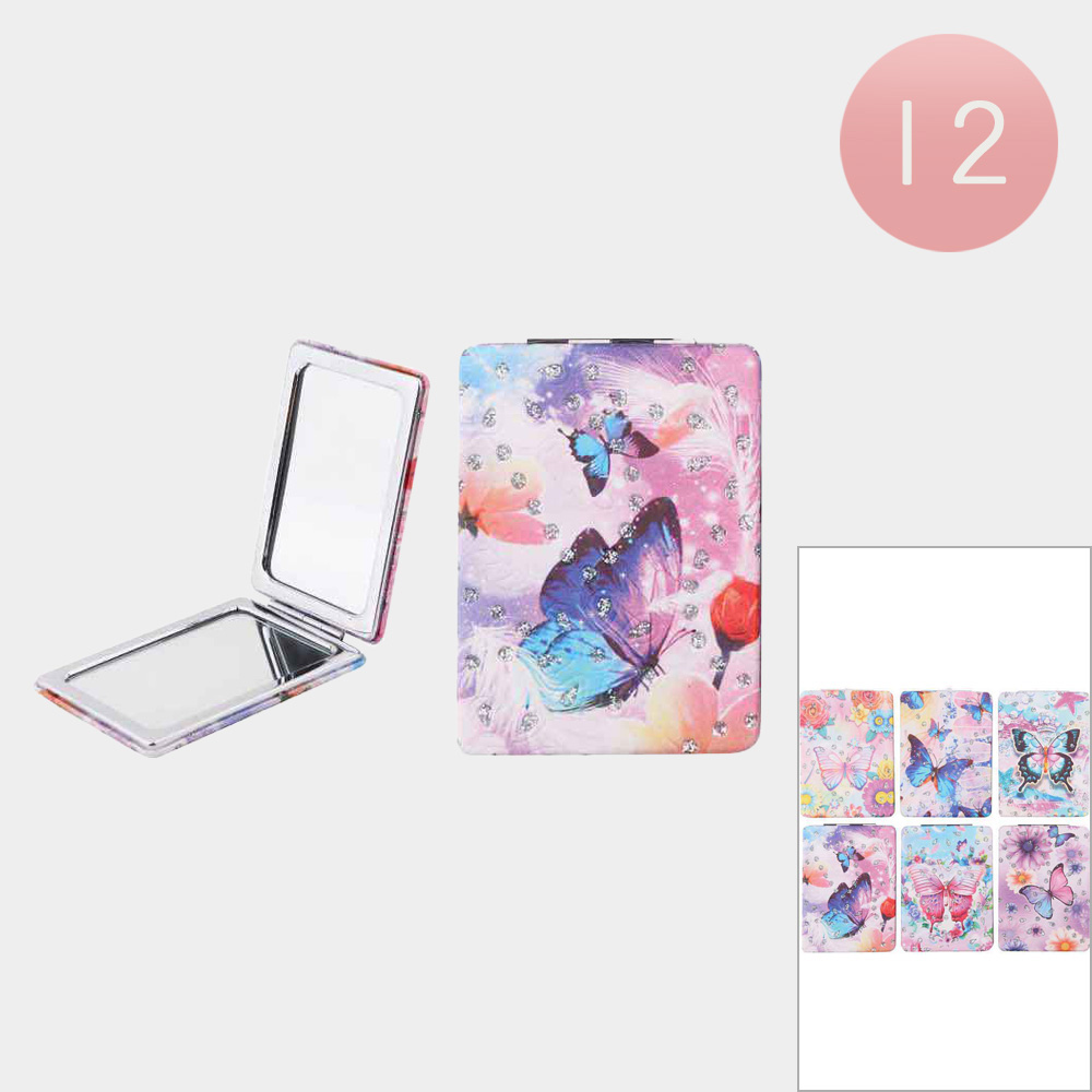 12PCS - Butterfly Printed Cosmetic Mirrors