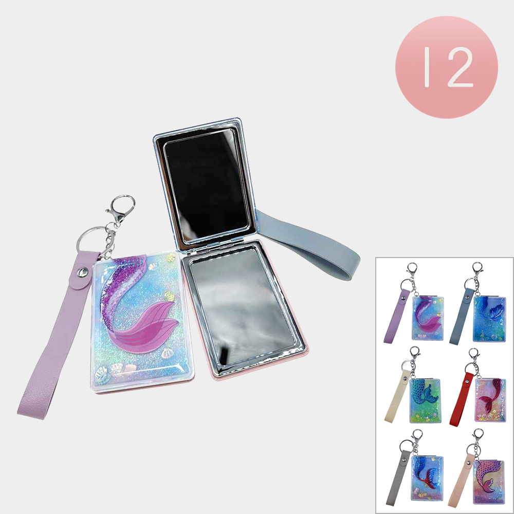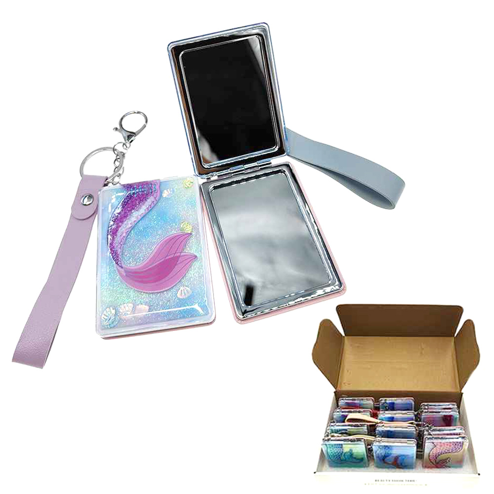 Details • Size : 2.4" X 3.25" • Strap Size : 4" L • 2 In 1 - Plain Mirror And Magnifying Mirror • Shimmering mermaid compact mirror keychain with dual mirrors, sturdy clasp, and handy wrist strap for easy everyday touch-ups. Ideal for gifting, party favors, travel kits, or adding a cute, functional accessory to keys, purses, backpacks, and cosmetic bags.