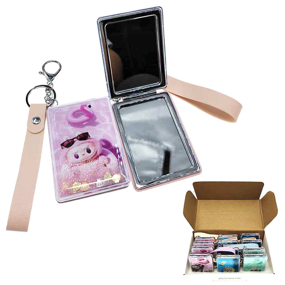 Details • Size : 2.4" X 3.25" • Strap Size : 4" L • 2 In 1 - Plain Mirror And Magnifying Mirror • Playful monster bunny character compact mirror keychain with dual mirrors, secure clasp, and handy wrist strap for quick touch-ups anywhere. Perfect for gifts, party favors, travel kits, or adding a fun, practical accessory to keys, purses, backpacks, and cosmetic bags.