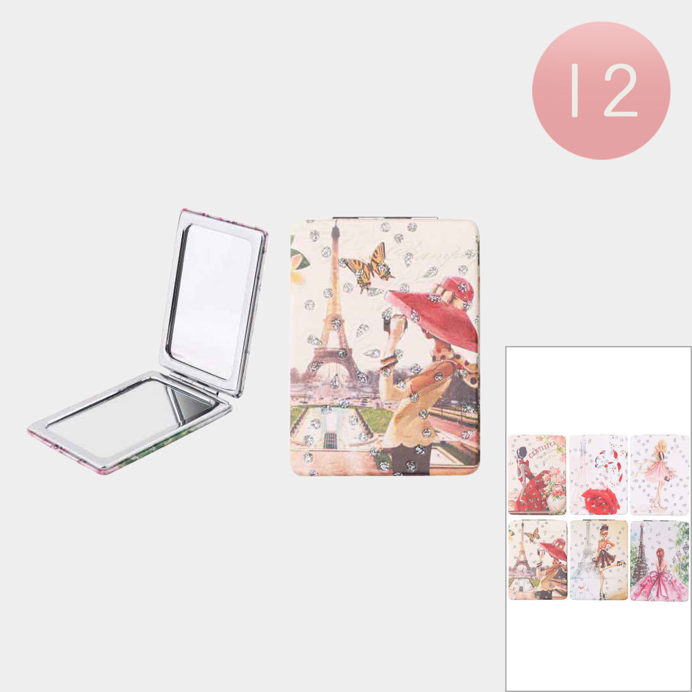 12PCS - Parisienne Printed Cosmetic Mirrors