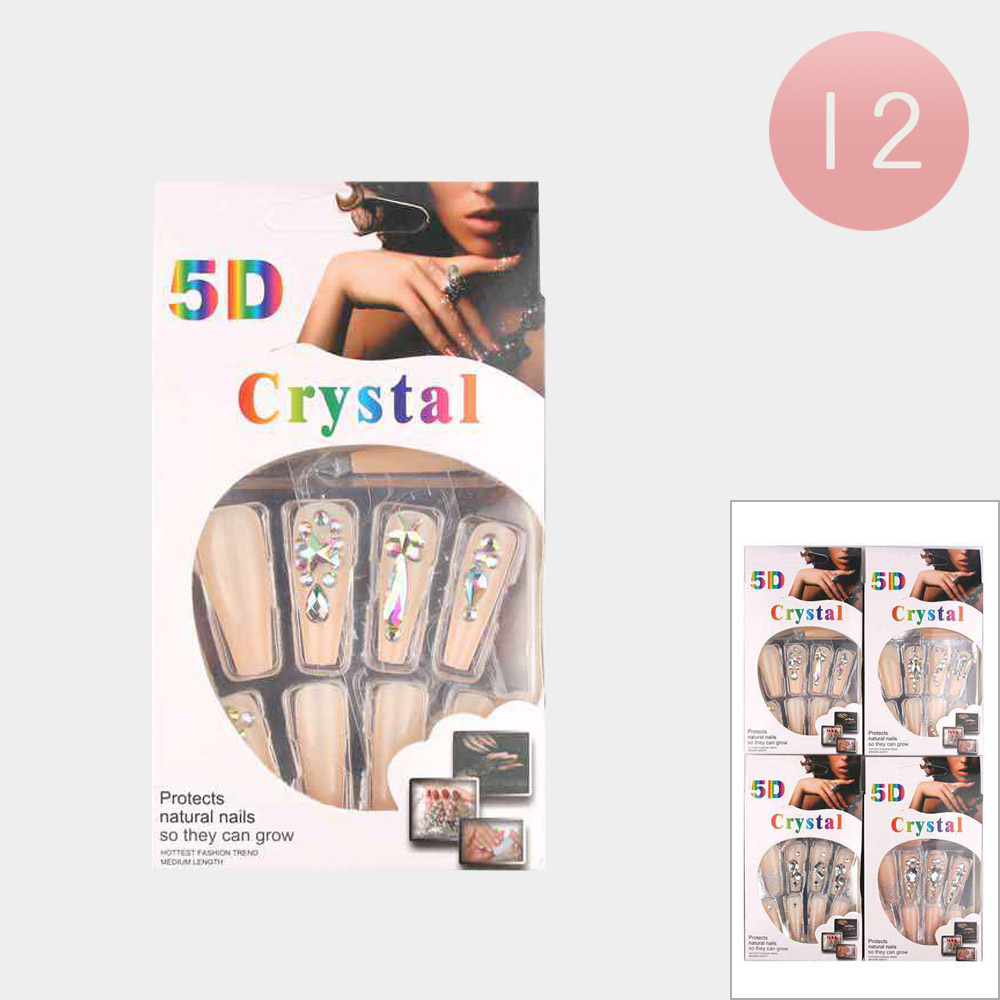12Pack - 5D Crystal Press On Nail Set