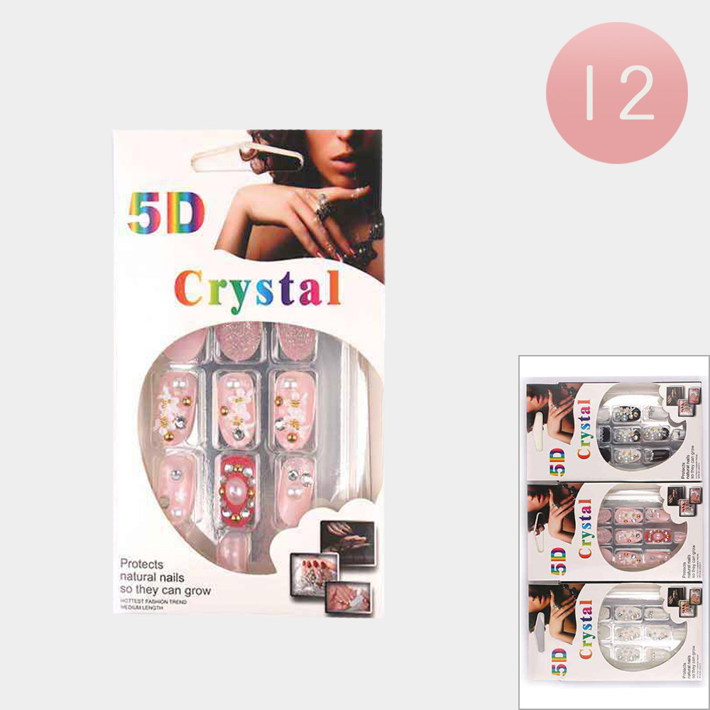 12Pack - 5D Crystal Press On Nail Set