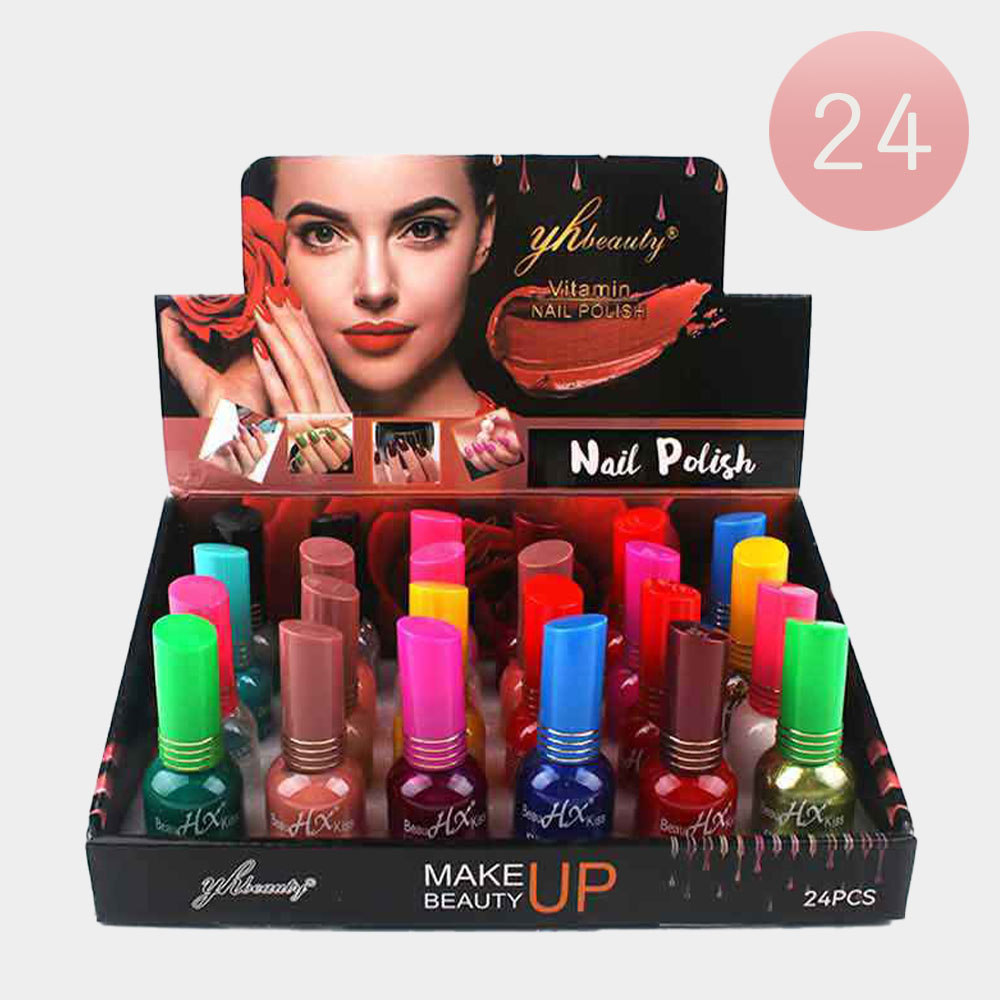 Details • Size : 3.6" L • YHBeauty nail polish set features 24 vibrant shades enriched with vitamin care. Offers smooth application, fast drying, and salon-quality shine for everyday or professional use.