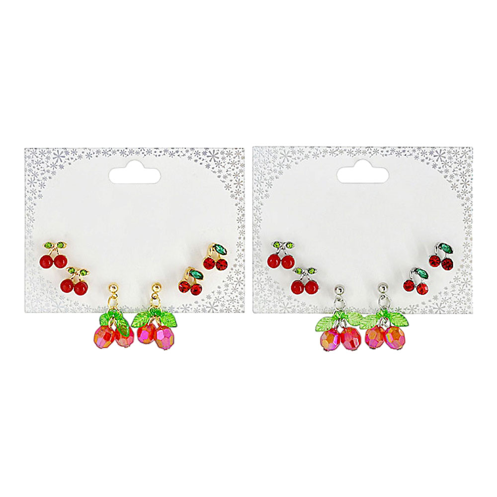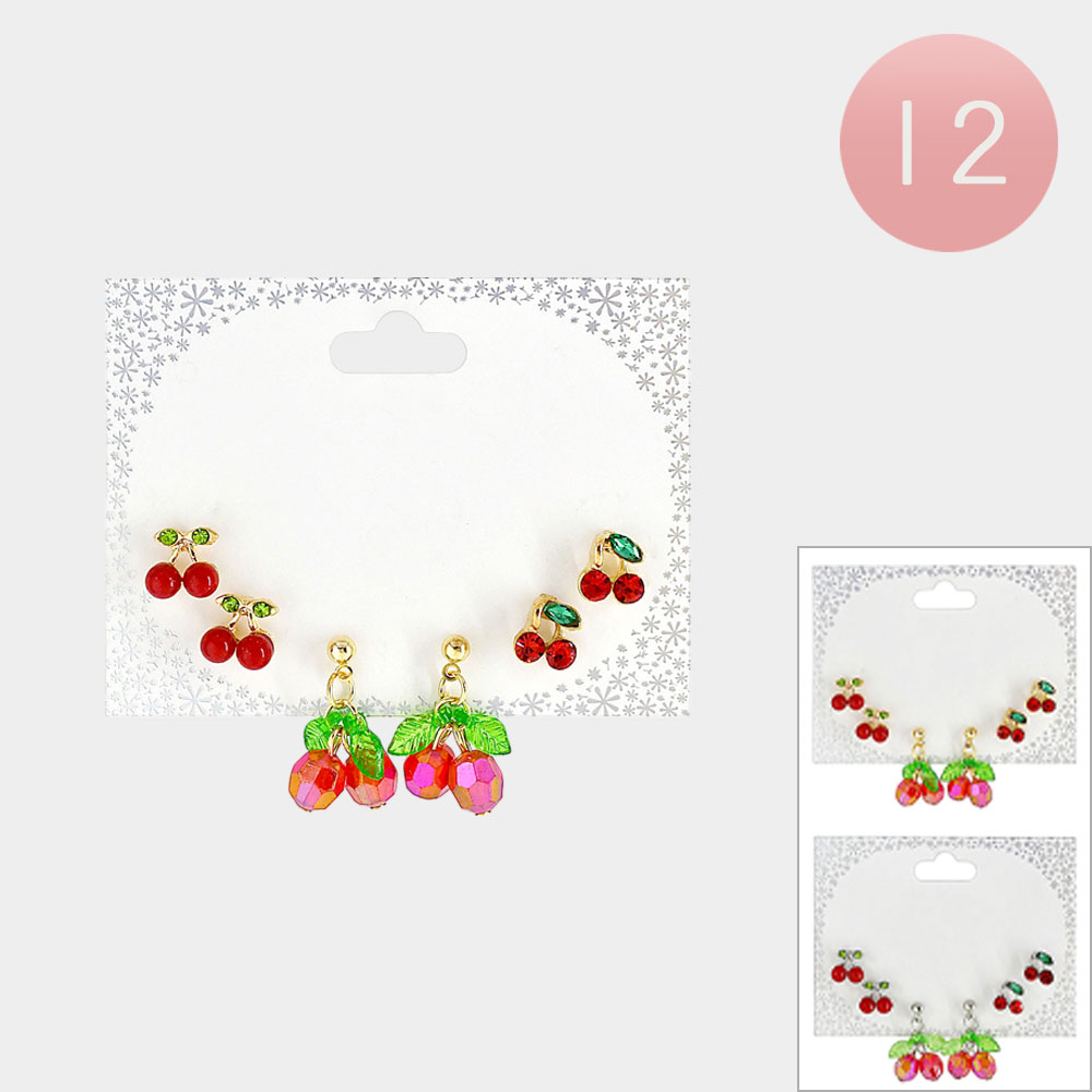 12 SET OF 3 - Cherry Stud Dangle Earring Set