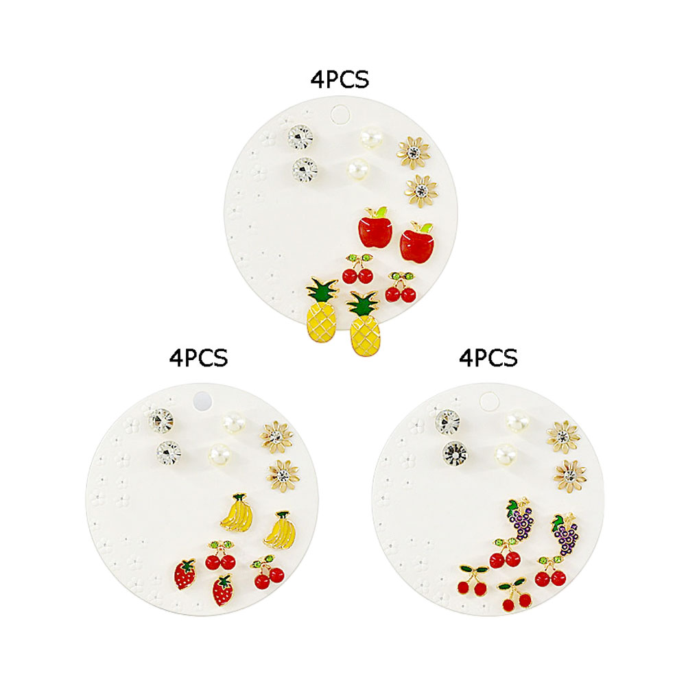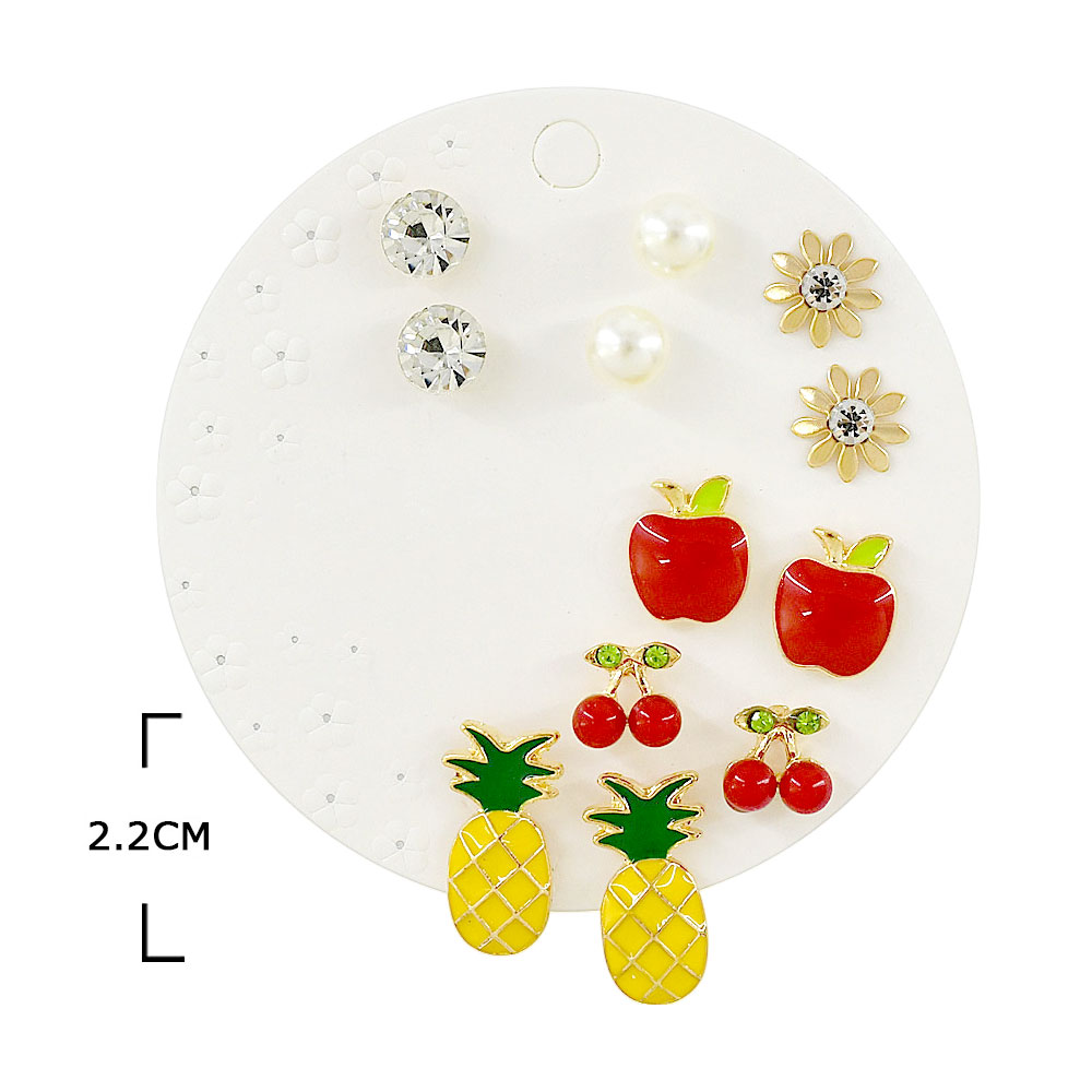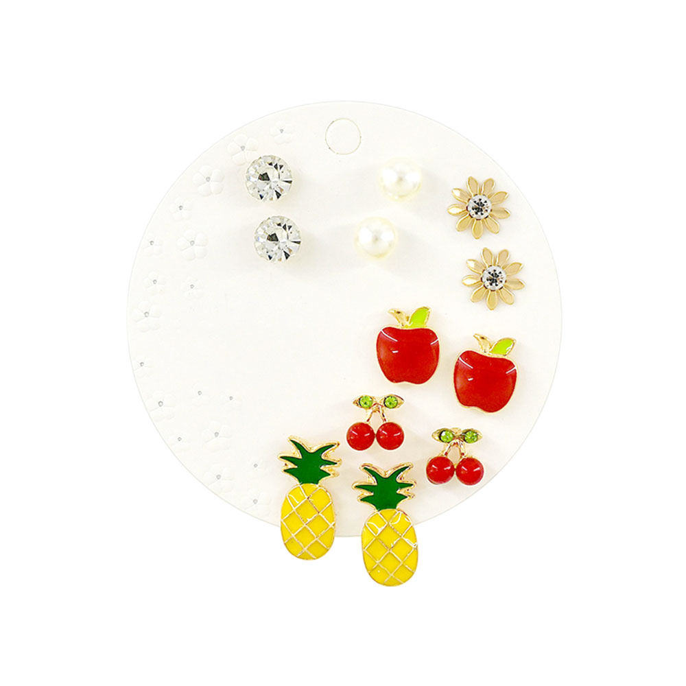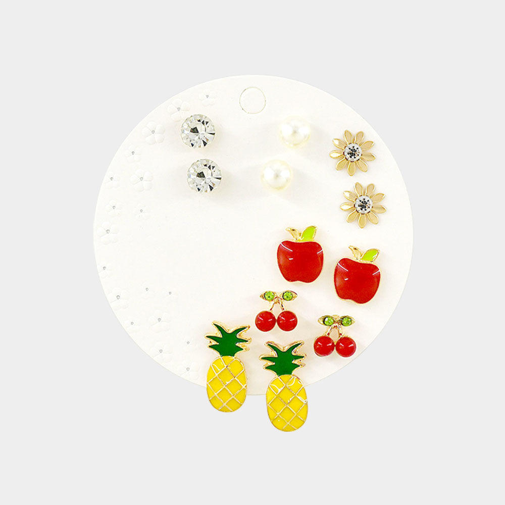 Details • Size : 0.3" - 0.8" L • Post Back • Express your playful side with this 6-pair earring set featuring charming fruit and flower designs. A versatile and fun accessory collection perfect for everyday style or gifting occasions.