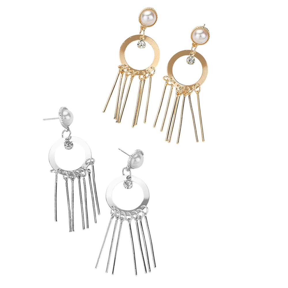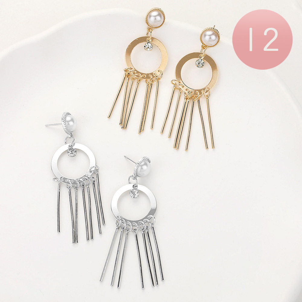 Teardrop Stone Accented Fringe Dangle Evening Earrings