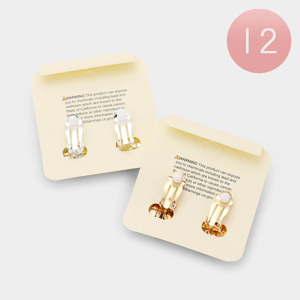 12Pairs - Color Block Rhinestone Square Clip on Earrings