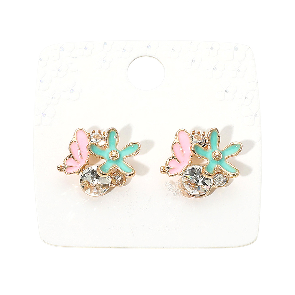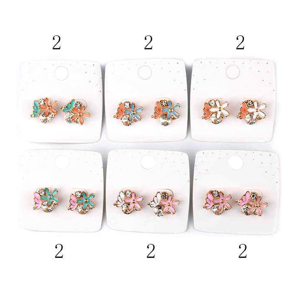 Details • Size : 0.75" X 0.8" • Post Back • Whimsical 12-pair flower and butterfly stud earring set with sparkling details. Perfect for adding a fun, feminine flair to everyday outfits or gifting to someone special.