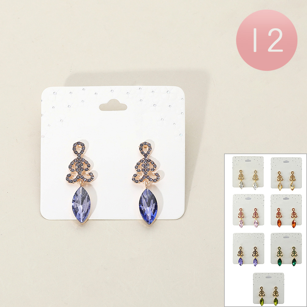 Details • Size : 0.6" X 1.75" • Post Back • Add sparkle to every outfit with this 12-piece mixed gem drop earring set, featuring elegant shapes, vibrant stones, and intricate detailing. Perfect for parties, gifting, or everyday glam, this versatile collection offers a dazzling pair for every mood and occasion.