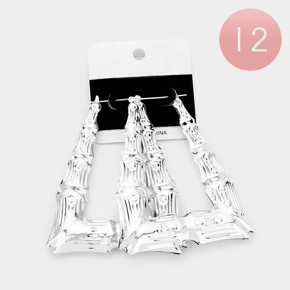 12Pairs - Metal Bamboo Geometric Pin Catch Earrings