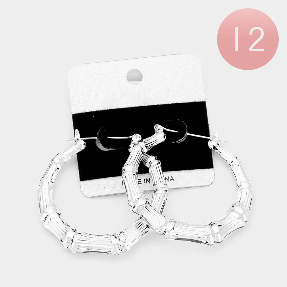 12Pairs - Metal Bamboo Pin Catch Earrings