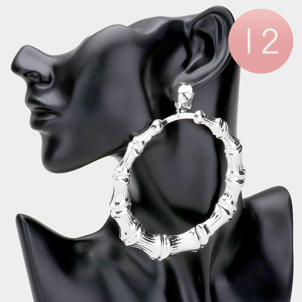 12Pairs - Metal Bamboo Hoop Pin Catch Earrings