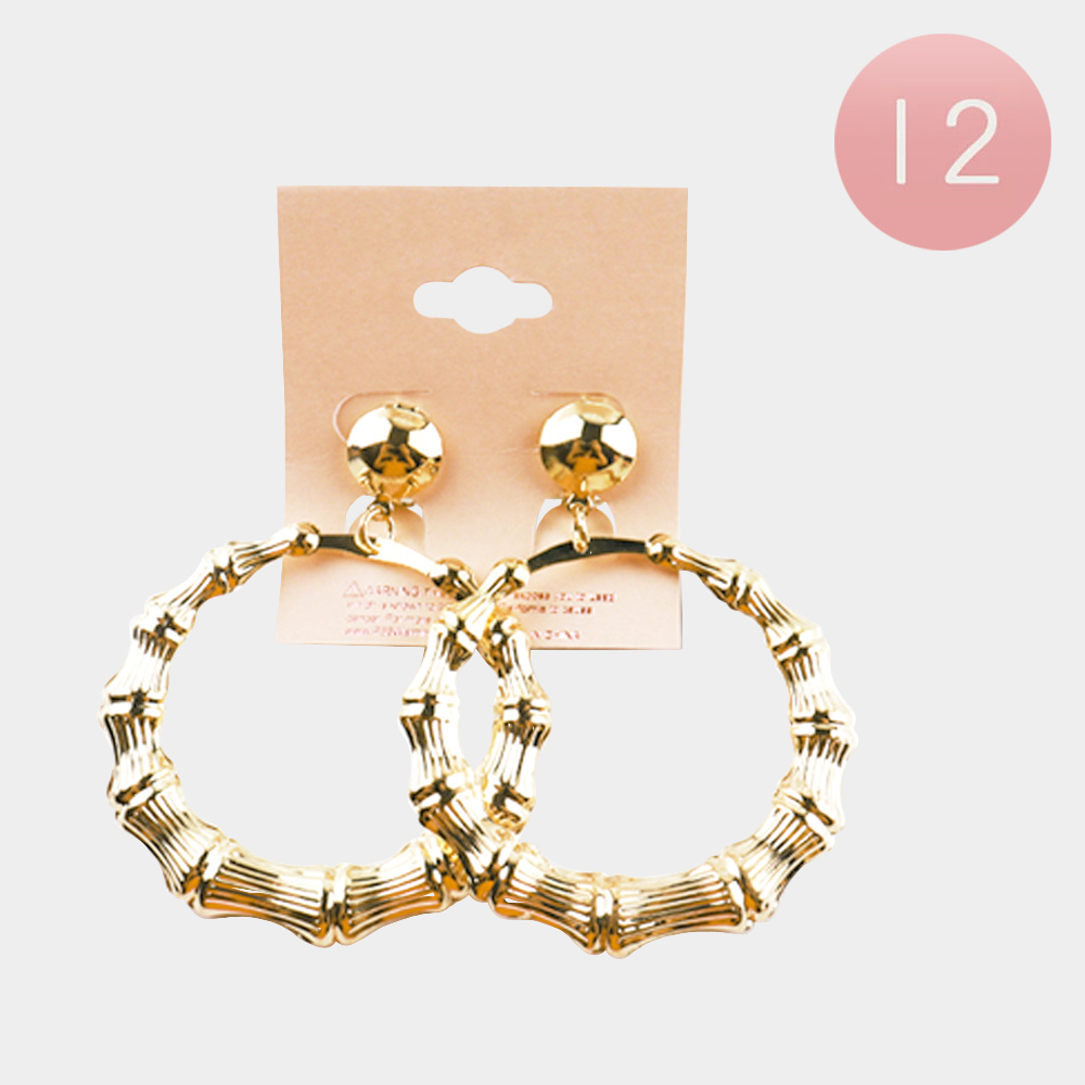 12Pairs- Metal Bamboo Heart Pin Catch Earrings