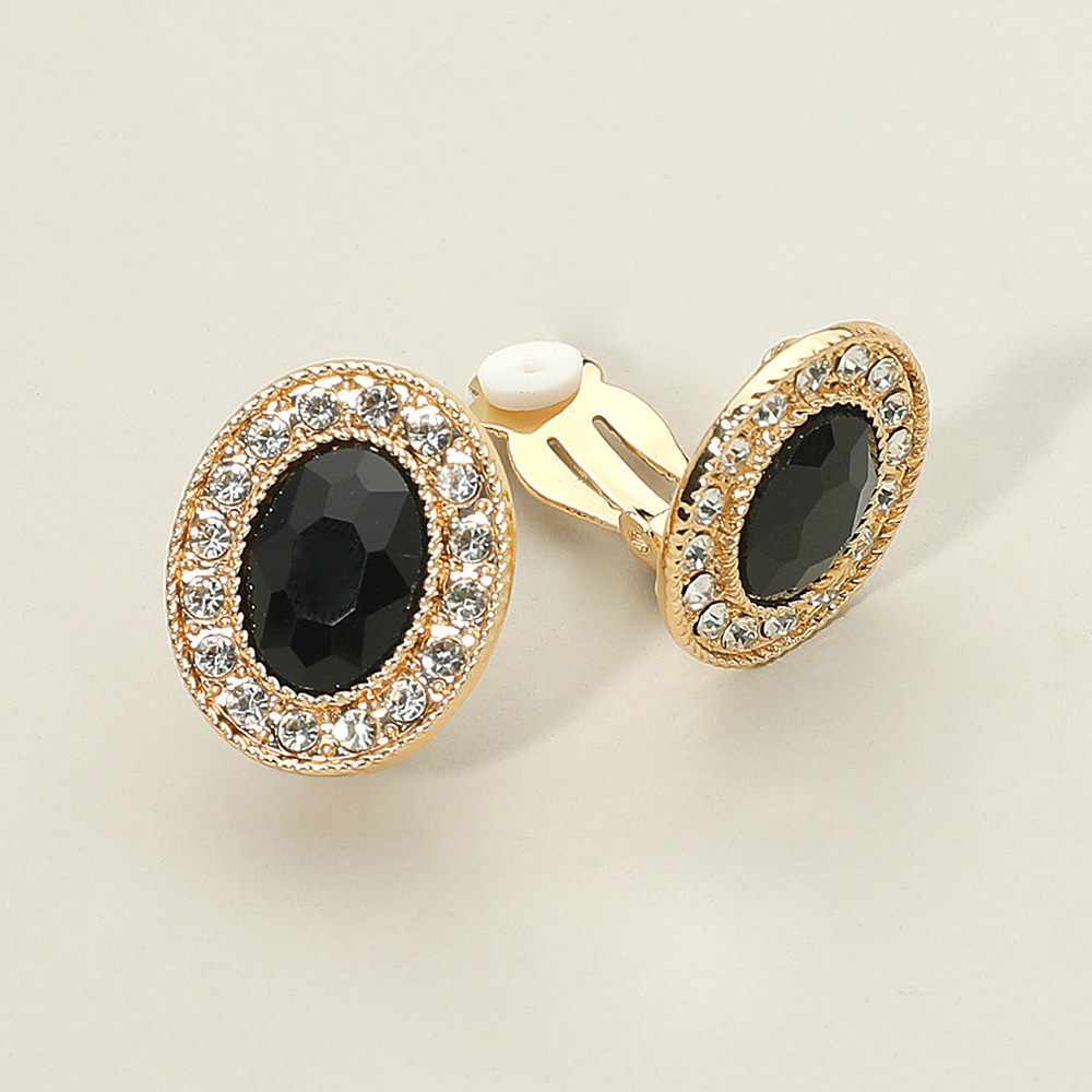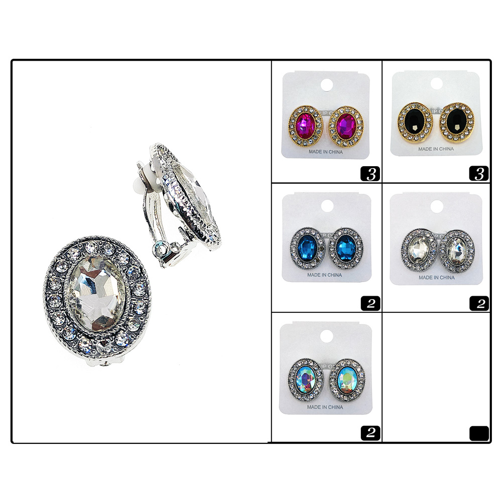 Details • Size : 0.75" X 0.8" • Clip On • Add timeless elegance with these oval clip-on stud earrings, accented by a sparkling rhinestone halo. Comfortable for non-pierced ears, these versatile earrings elevate any outfit, making them ideal for weddings, evening events, or everyday wear with a touch of refined glamour.