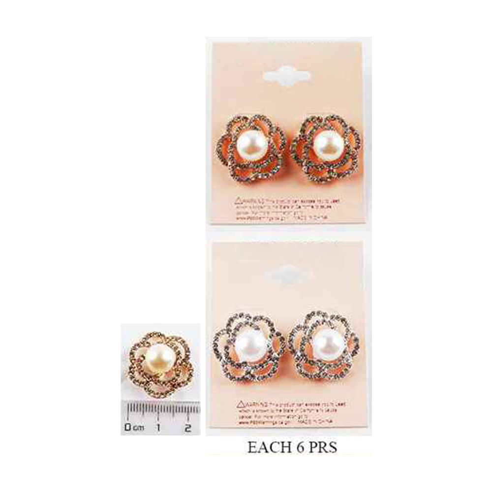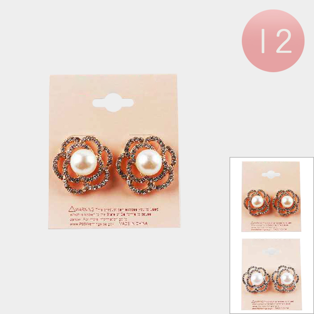 12Pairs - Pearl Pointed Stone Paved Flower Stud Earrings