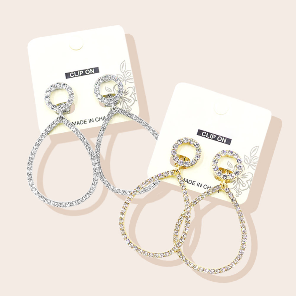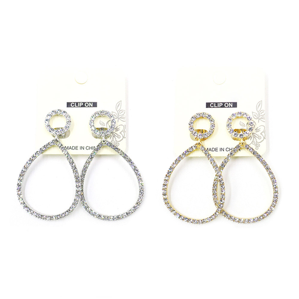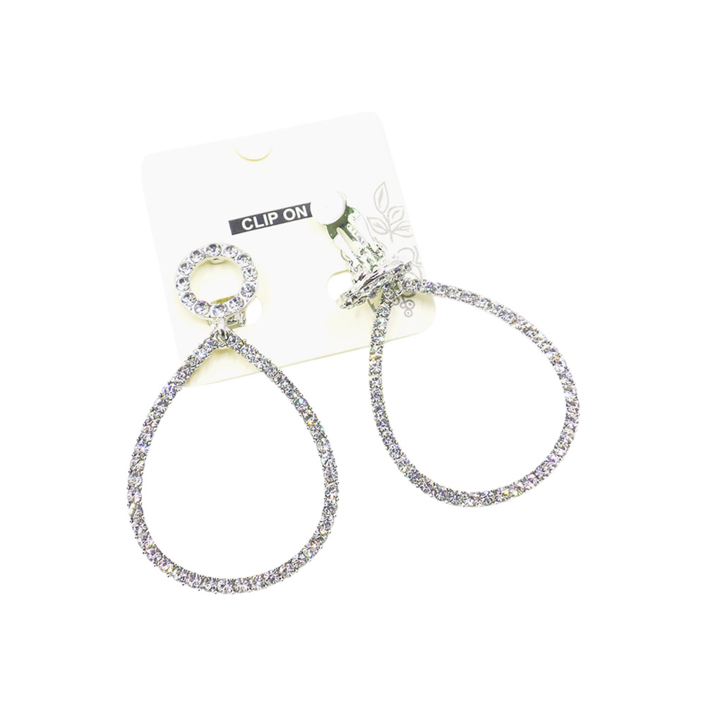 12Pairs - Rhinestone Pave Open Teardrop Link Dangle Clip on Earrings