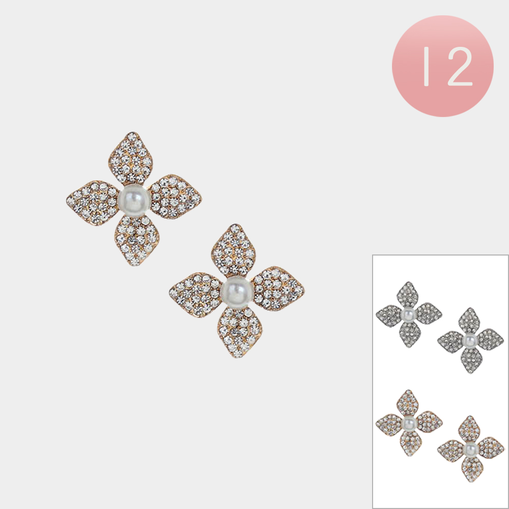 12Pairs - Round Stone Centered Stone Paved Flower Stud Earrings 12Pairs - Round Stone Centered Stone Paved Flower Stud Earrings