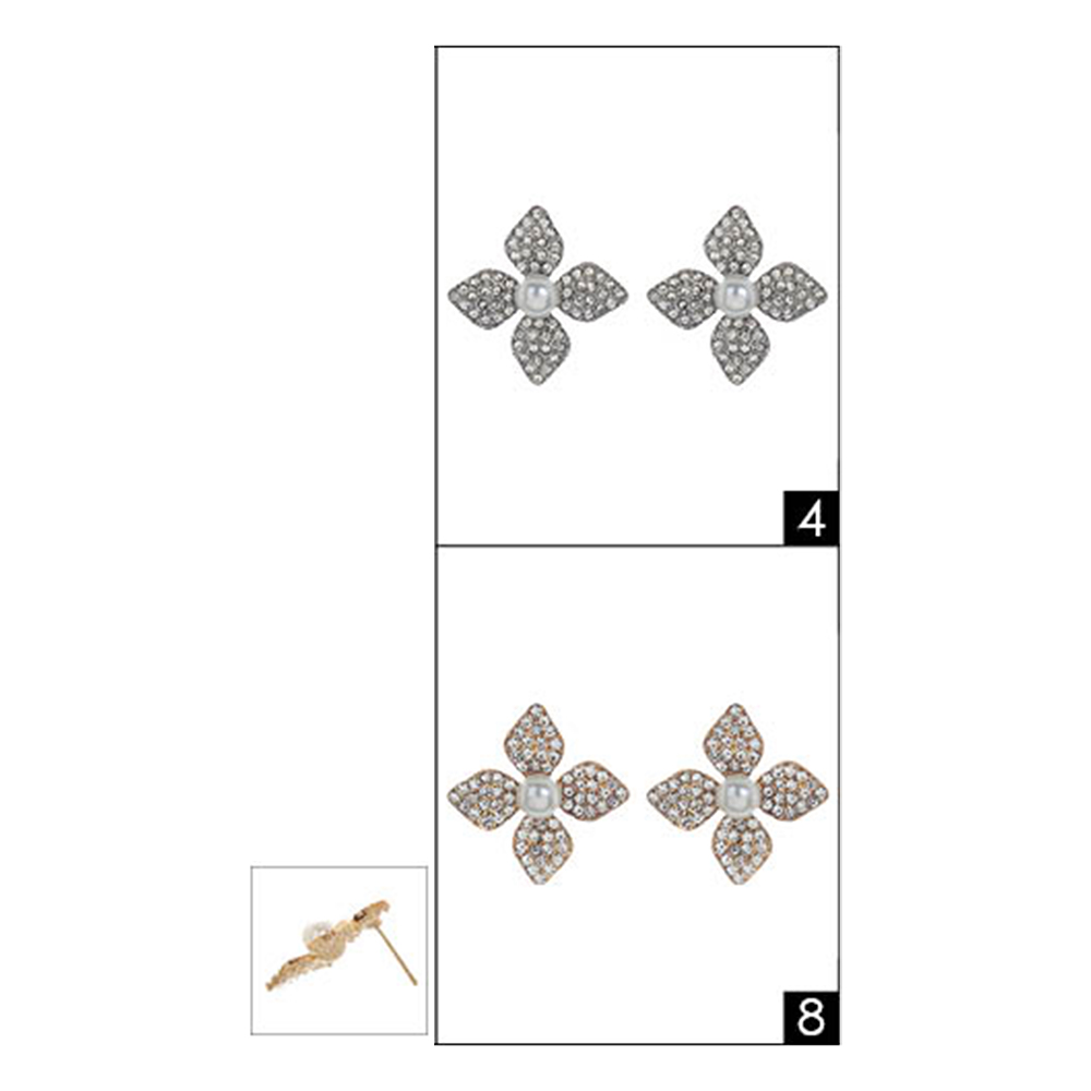 • Elevate your style with sparkling flower stud earrings featuring four crystal petals and a chic center accent. Perfect for both casual wear and formal occasions, these earrings add timeless charm and sophistication to any outfit.