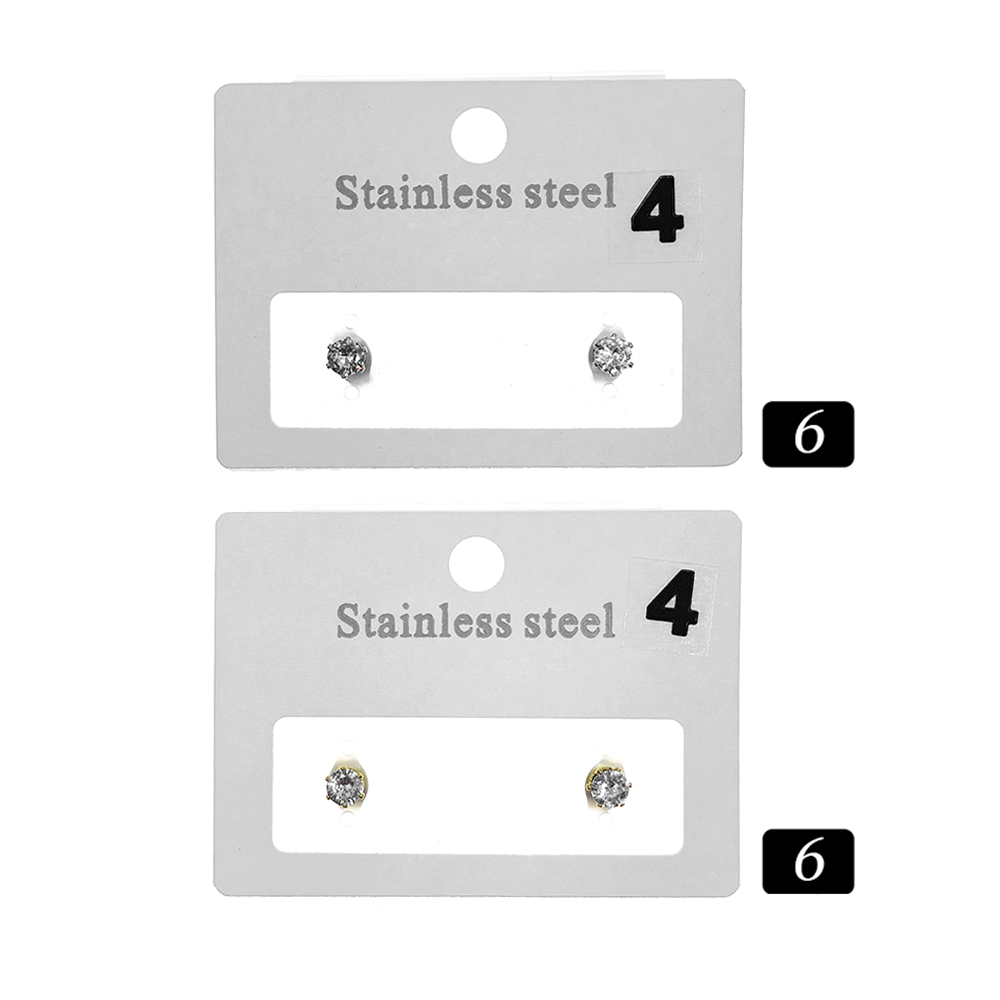 12Pairs - Stainless Steel 0.5mm Round Stone Stud Earrings