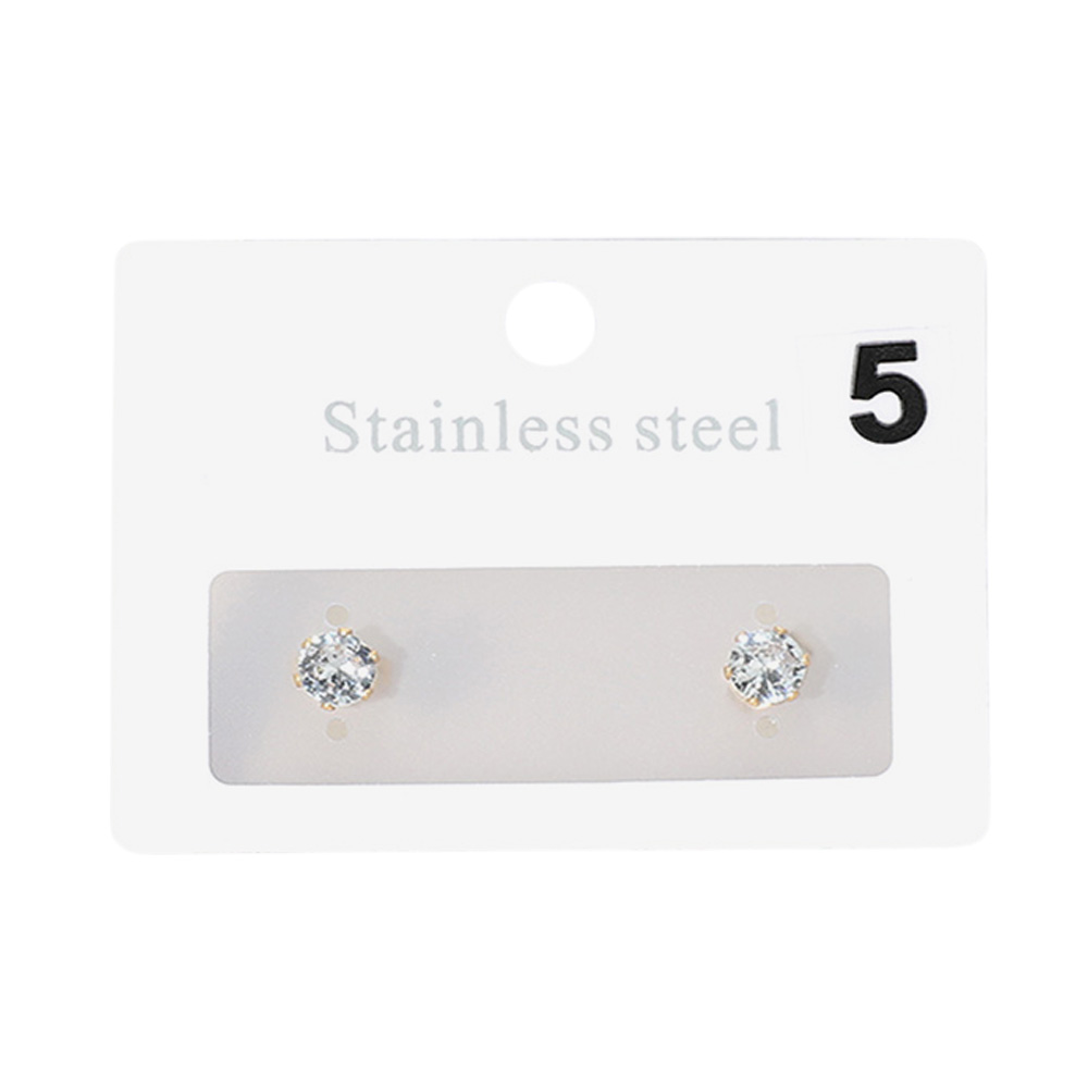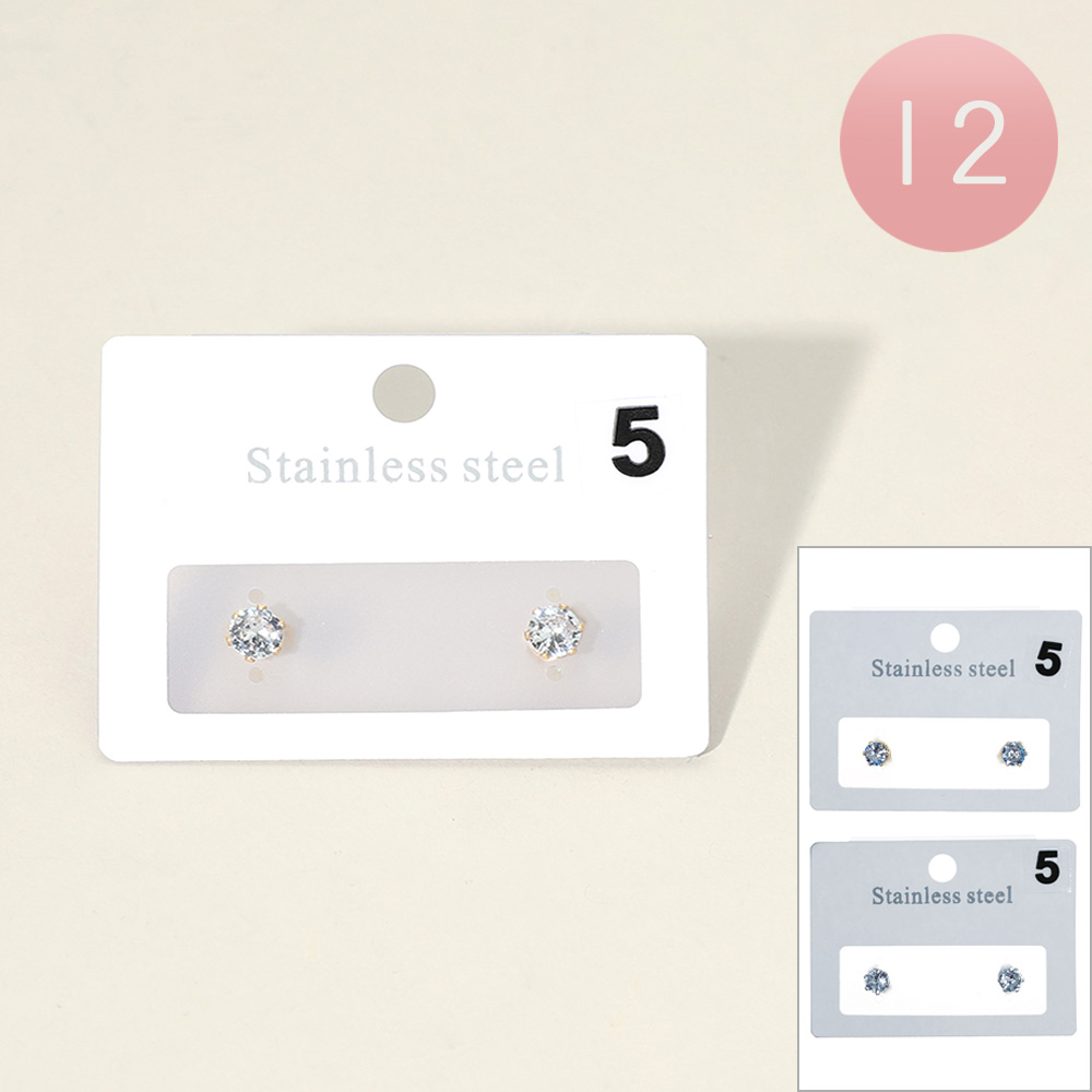 12Pairs - Stainless Steel 0.5mm Round Stone Stud Earrings