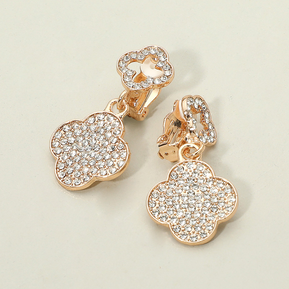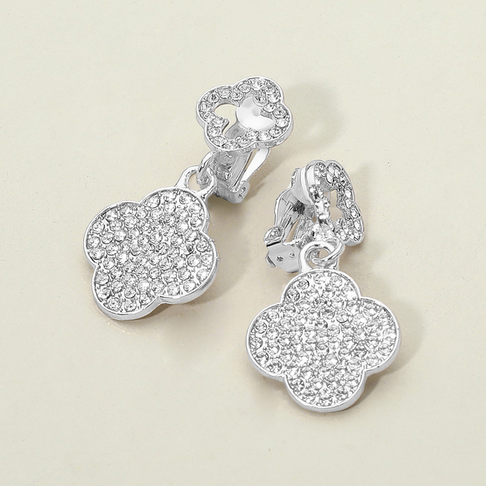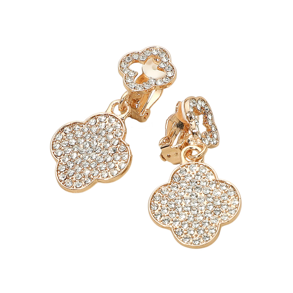 • Shine with quatrefoil flower clip-on earrings, fully encrusted with sparkling rhinestones for a bold pavĂ© effect. Perfect for non-pierced ears, these elegant statement earrings add timeless glamour to evening wear, weddings, and special occasions, bringing brilliance to every look.