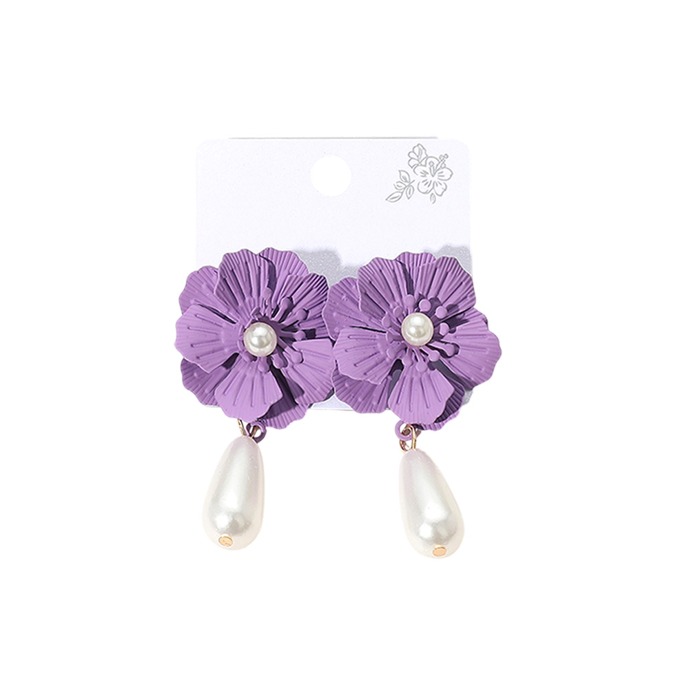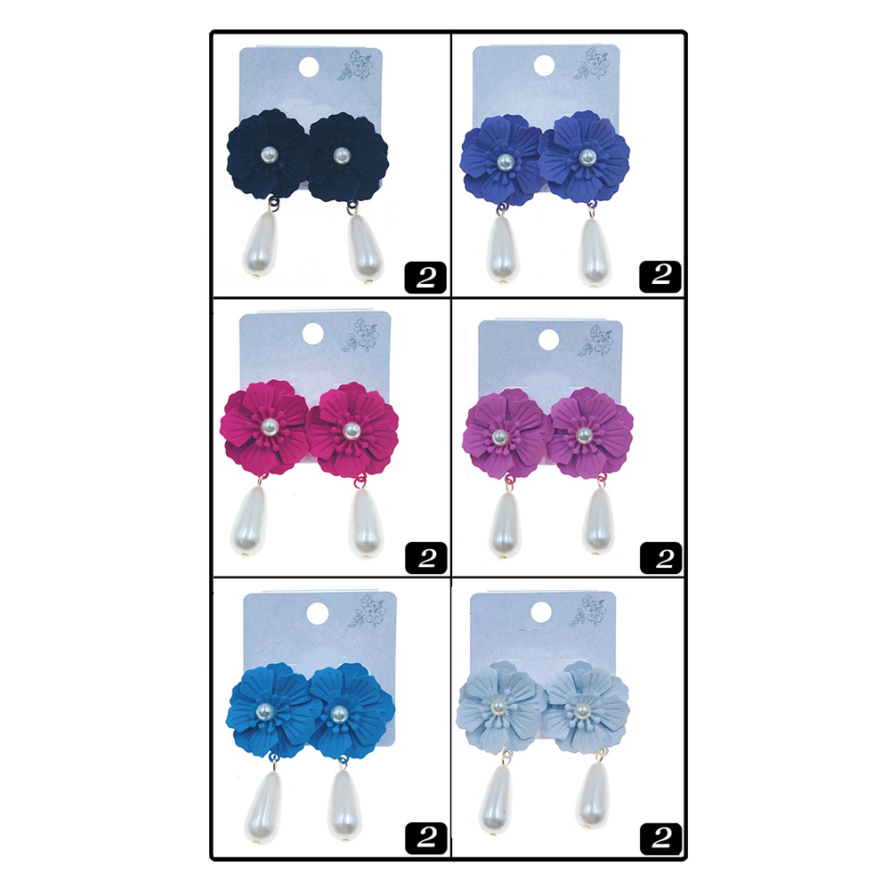 12Pairs - Teardrop Pearl Dangle Flower Earrings