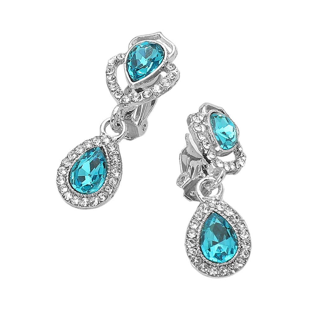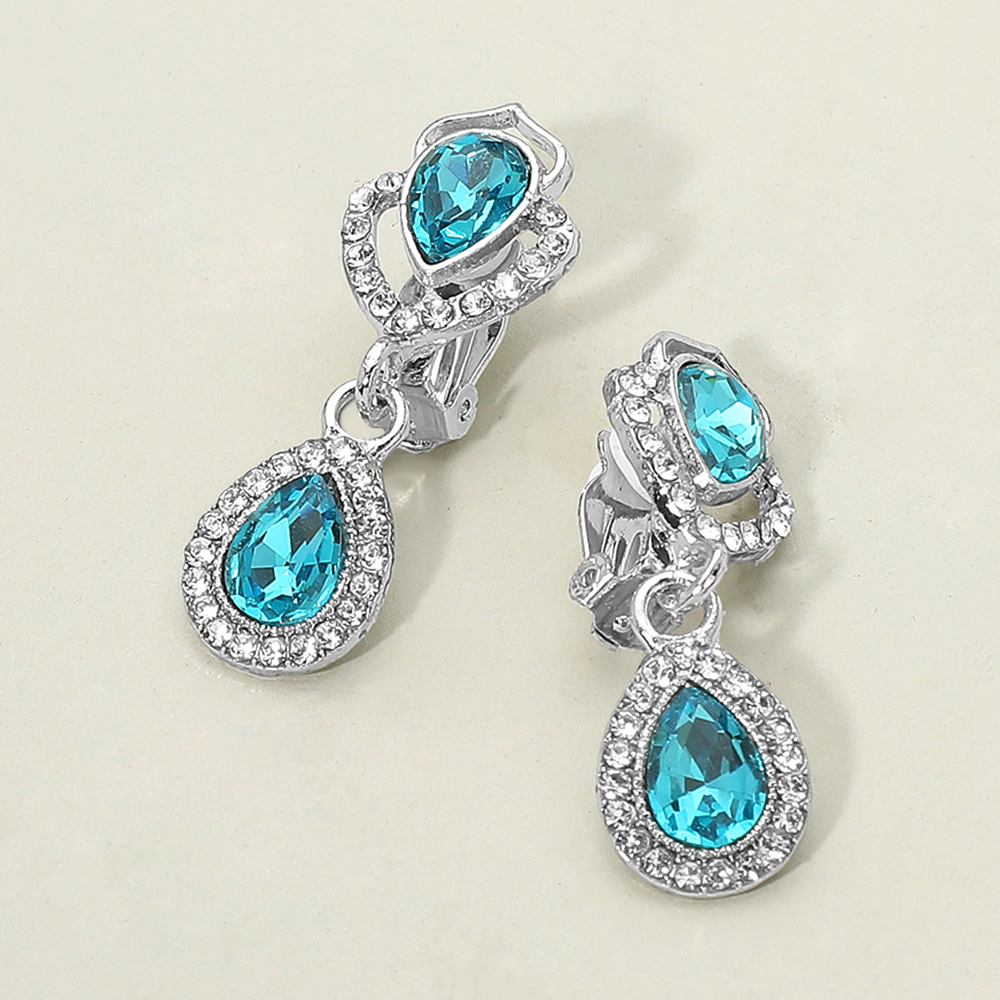 Details • Size : 0.7" X 1.7" • Clip On • Shine with these teardrop clip-on earrings, featuring sparkling rhinestones and a radiant teardrop centerpiece. Designed for comfort without piercings, these elegant earrings are perfect for parties, weddings, or evening events, offering timeless glamour and effortless sophistication.