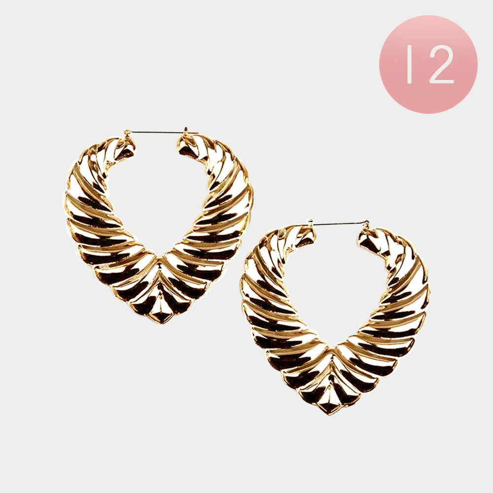 • Make a statement with these V-shaped hoop earrings featuring a bold cutout pattern. Their sculptural design adds modern elegance, perfect for elevating everyday looks or completing chic evening styles.