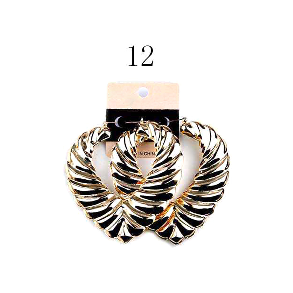 12Pairs - Textured Metal Hoop Pin Catch Earrings