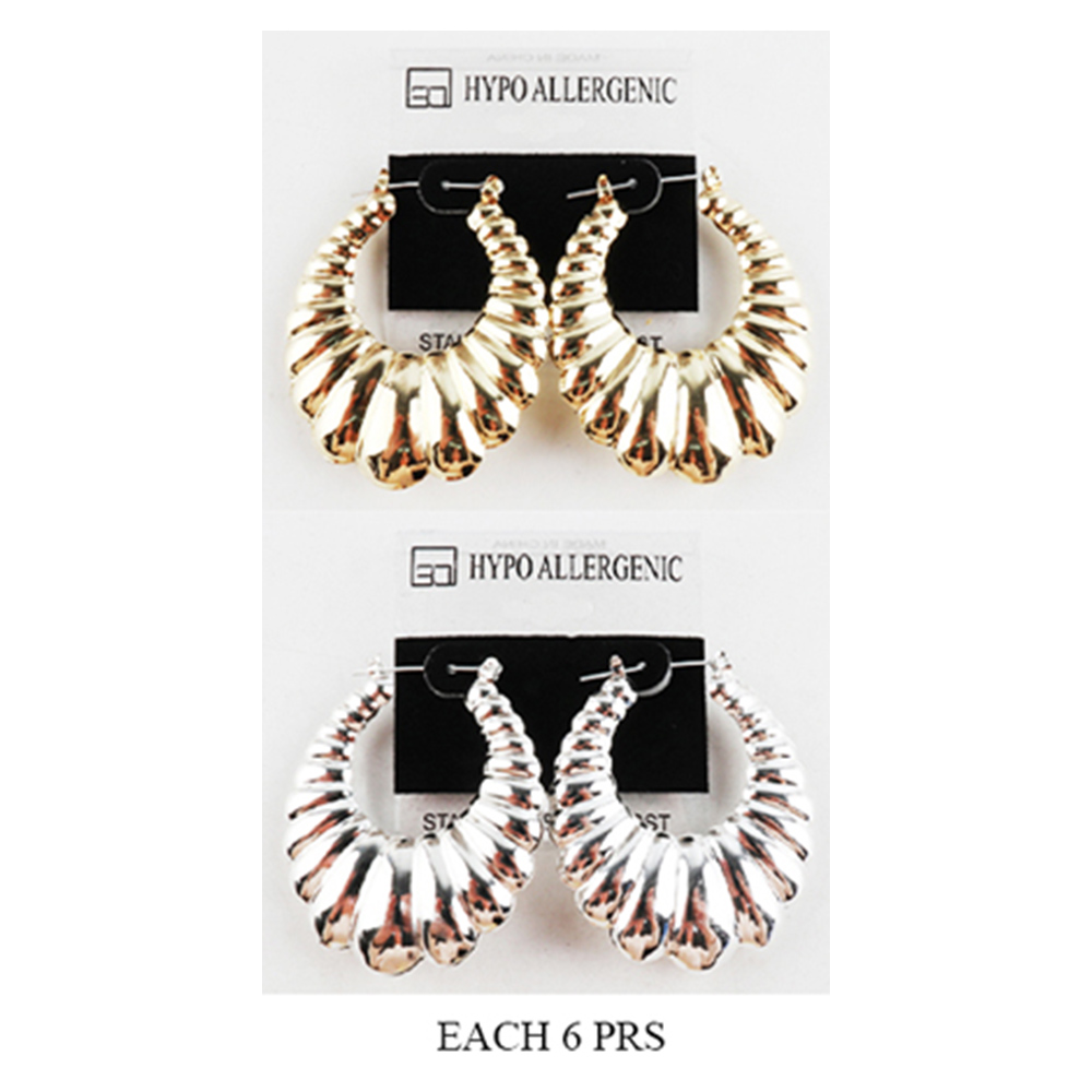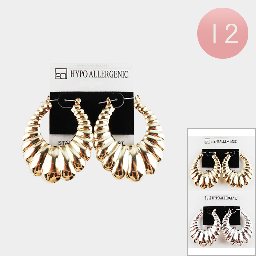 12PAIRS - Textured Metal Oval Pin Catch Hoop Earrings