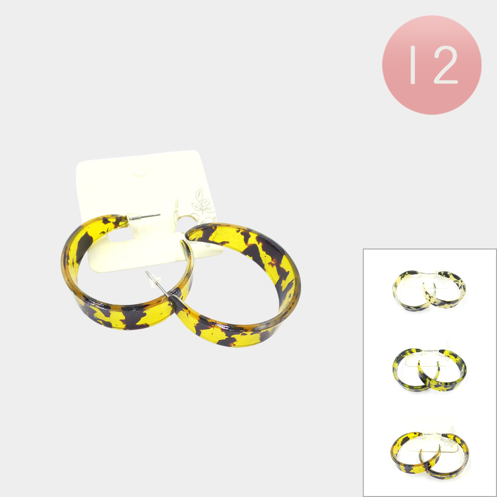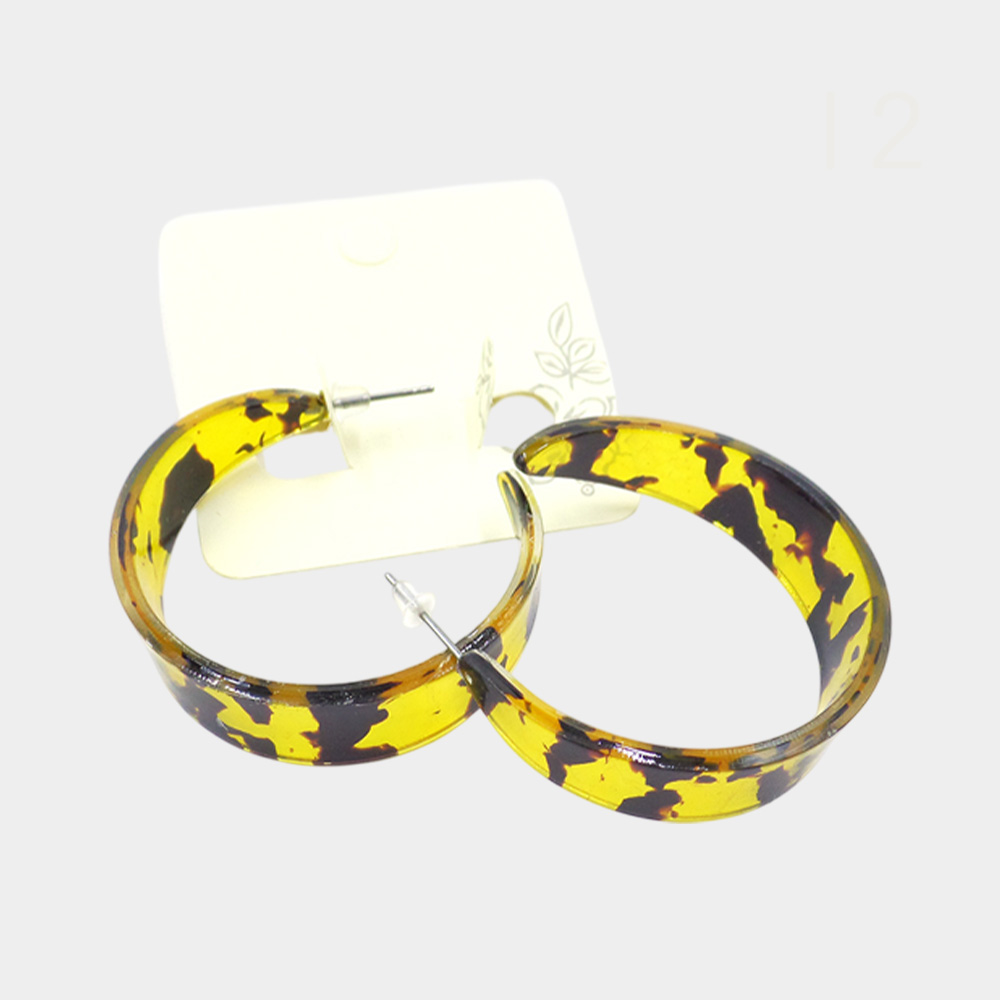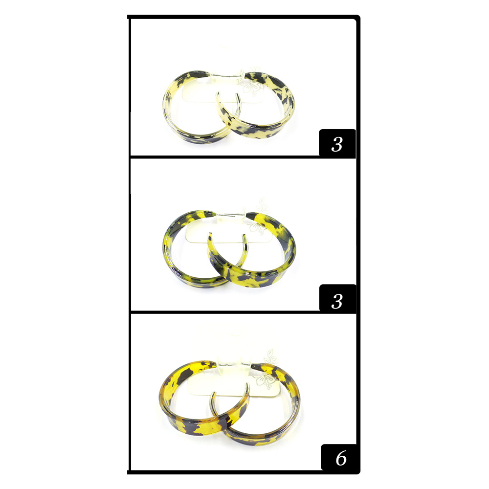 Details • Size : 1.7"L • Post Back • Make a statement with this set of bold abstract pattern resin hoop earrings. Featuring three stylish variations, these hoops add a modern twist to any outfit while keeping your look effortlessly chic and versatile.