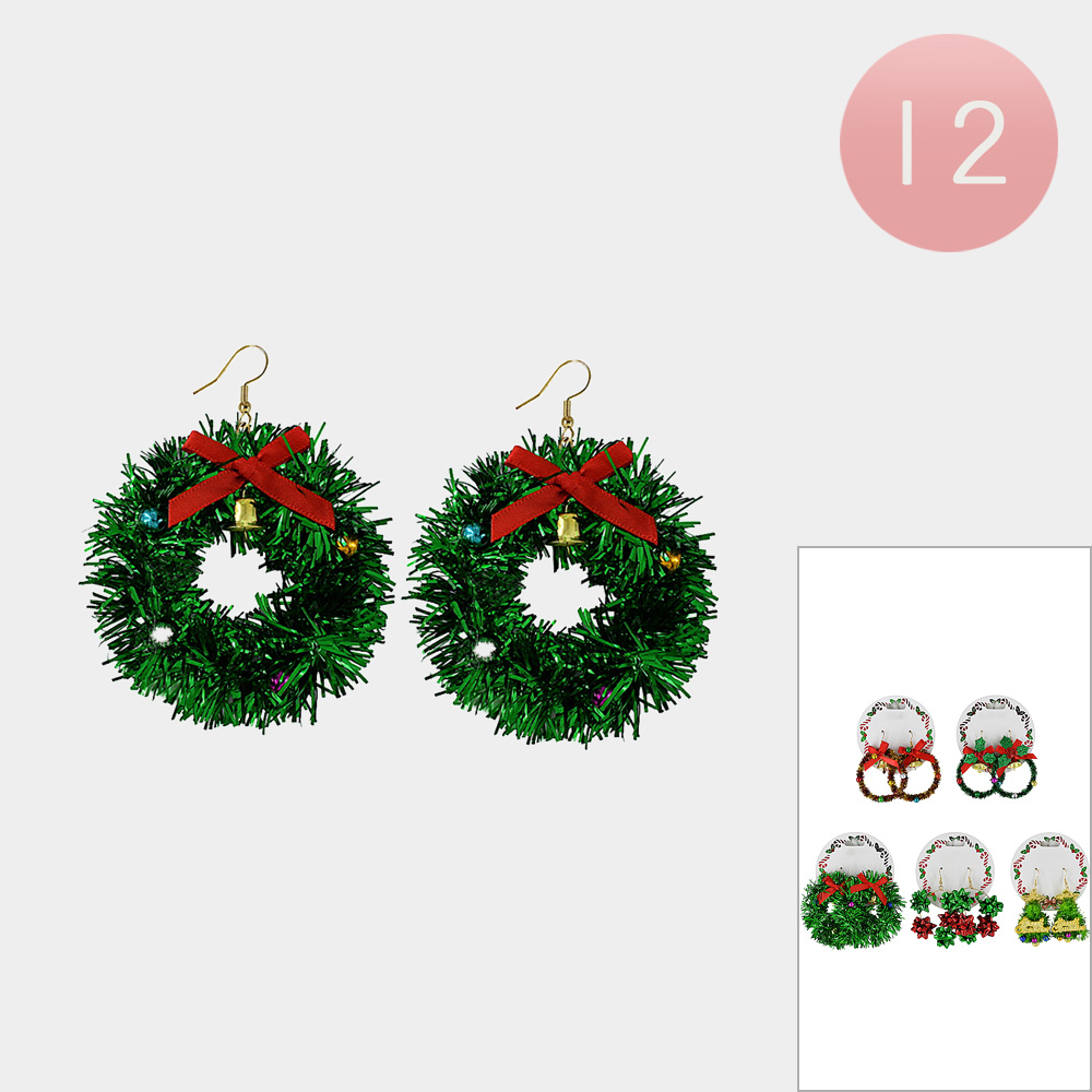 Details • Size : 3.1" X 3.1" • Fish Hook Back • Brighten your holiday look with this Christmas earrings set featuring festive wreaths, glitter bows, and merry accents. Perfect for parties, stocking stuffers, and gifting, these statement earrings bring playful cheer and seasonal sparkle to every outfit. • Lead and Nickel Compliant