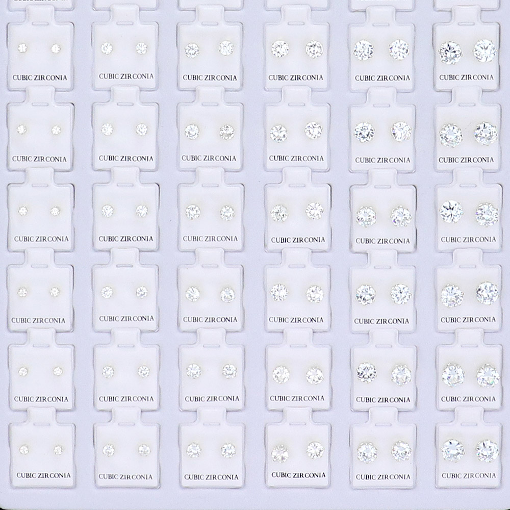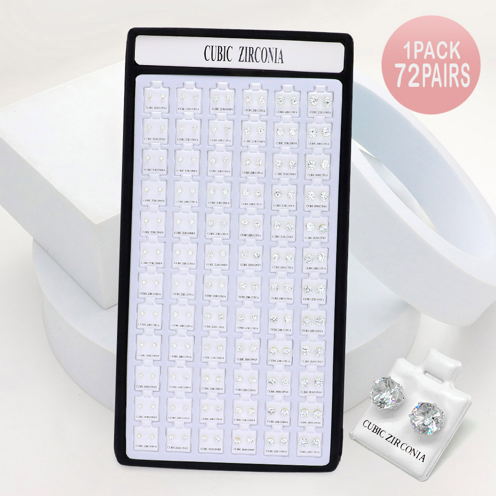 72PAIRS - Round CZ Stone Stud Earrings