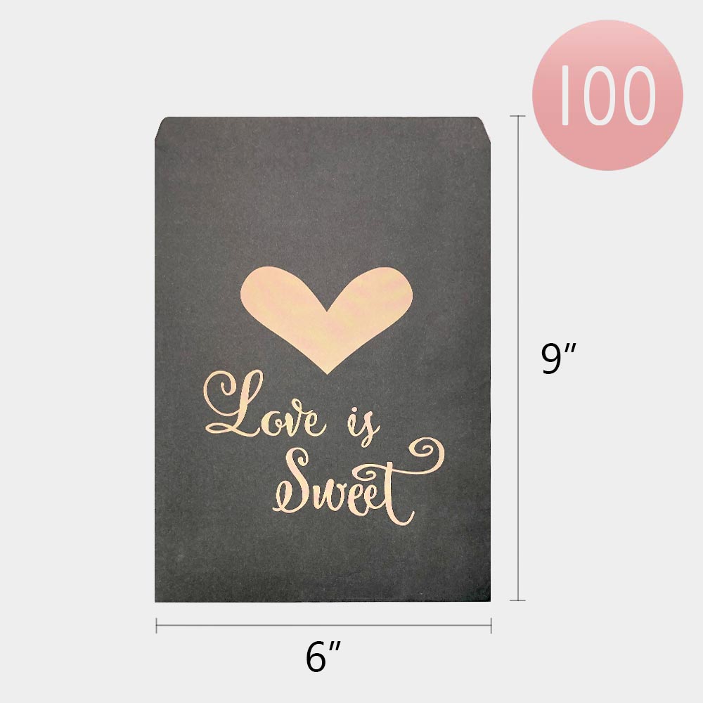 100PCS - Love is Sweet Message Heart Gift Paper Bag Set