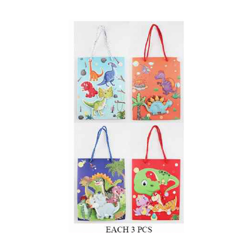 Details • Size : 7" X 9.25" X 3.35" • Top Handle Size : 4.75" L • Dinosaur Character Gift Bag features a fun illustrated scene with a spacious interior and sturdy carry handles, ideal for party favors, toys, snacks, or giveaways. Great for birthdays, school events, themed celebrations, and retail packaging with easy transport and reuse.