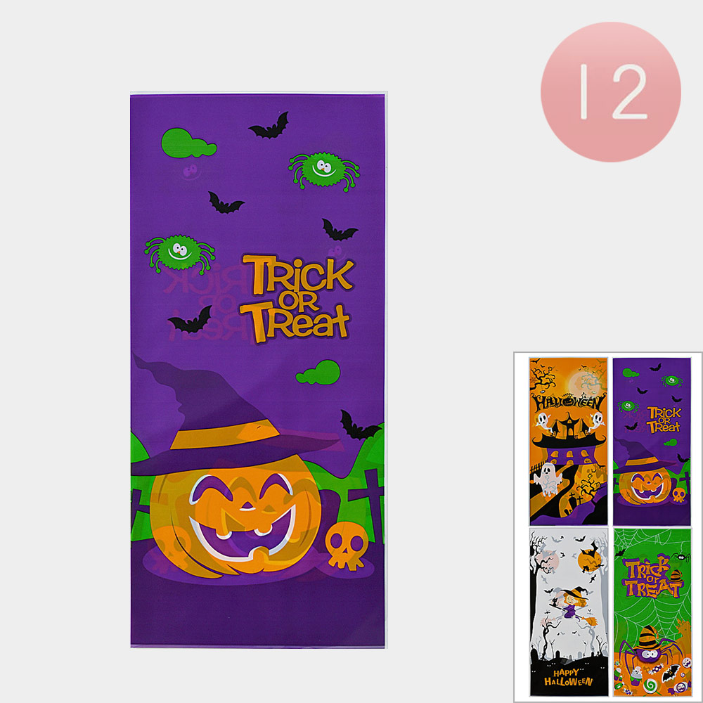Details • Size : 5" X 1.1" • Fun Halloween treat bags featuring a pumpkin with witch hat, spooky eyes, bats, and festive "Trick or Treat" text. Ideal for party favors, candy giveaways, or themed events. Comes in a mix of playful designs to bring extra cheer to your Halloween celebrations.