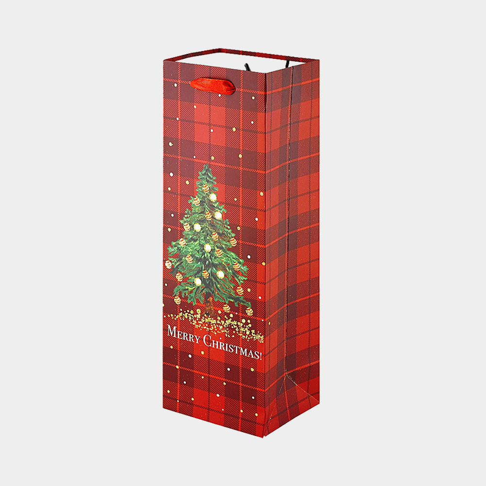 Details • Size : 4.75" X 14" X 3.75" • Top Handle Size : 3.75" L • Celebrate the season with these assorted Christmas wine gift bags featuring festive holiday patterns and sturdy ribbon handles. Perfect for gifting wine, champagne, or specialty drinks, these elegant bags add charm and holiday spirit to every celebration.