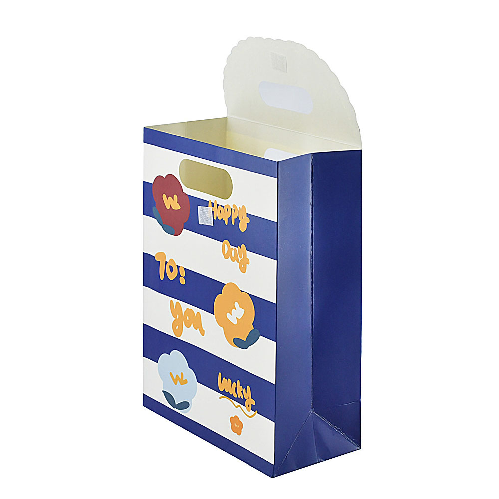 Details • Size : 7.5" X 3.5" X 10.5" • Stylish 12-pack of blue gift bags with floral and graphic prints. Features built-in handles and secure closure—perfect for birthdays, parties, weddings, and special occasions.